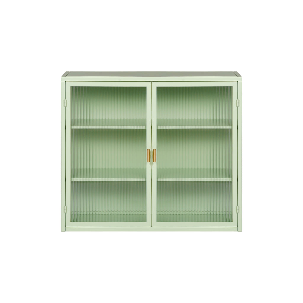 Wall Cabinet, 70CM Modern Two-Door with Three-Tier Storage, Glass Doors (Green)