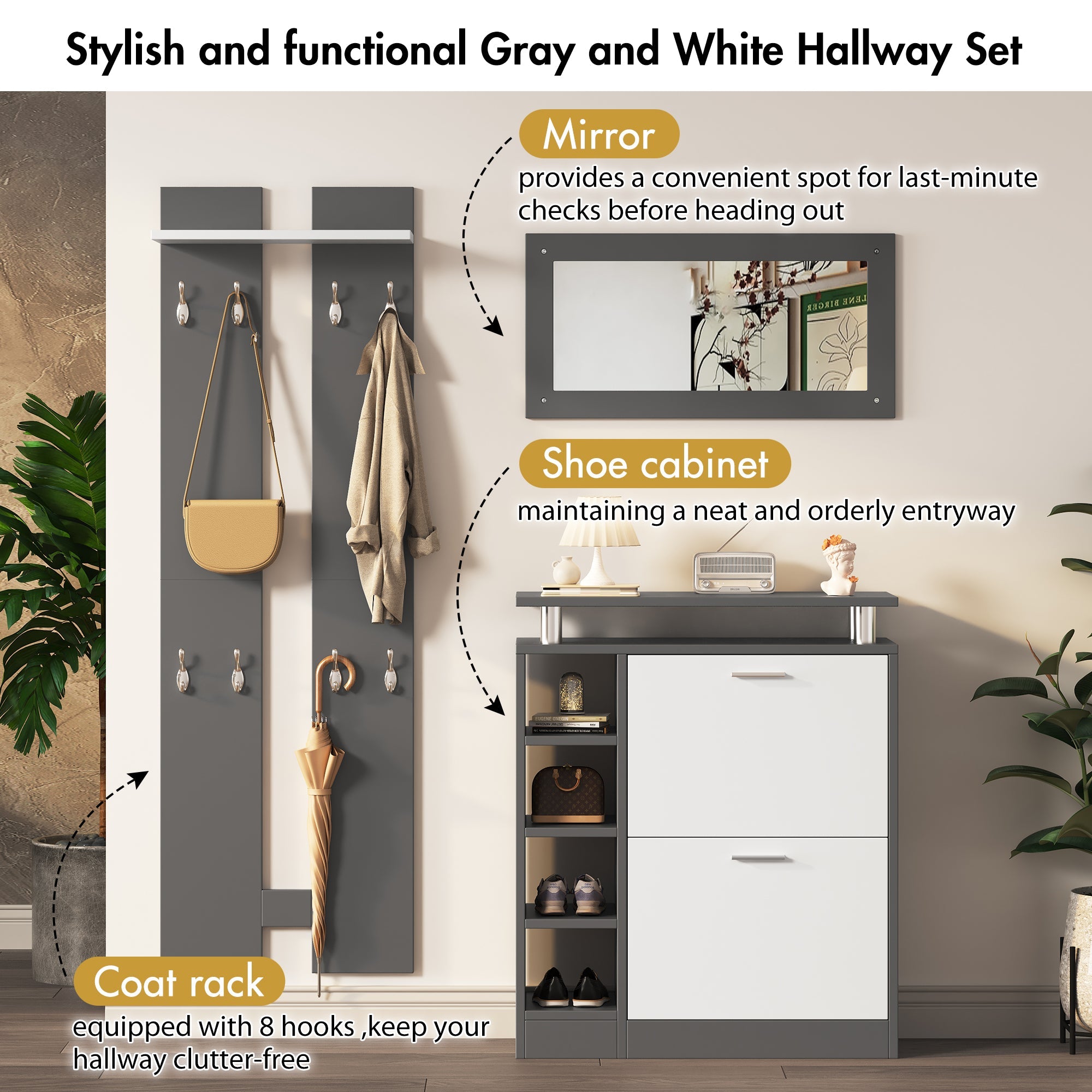 This modern gray wardrobe set is suitable for a variety of living scenarios and is particularly well-suited for narrow spaces such as foyers and hallways. Whether you need a practical storage solution for your entryway or are looking for a modern decorative element for your home, this wardrobe set is ideal for you.