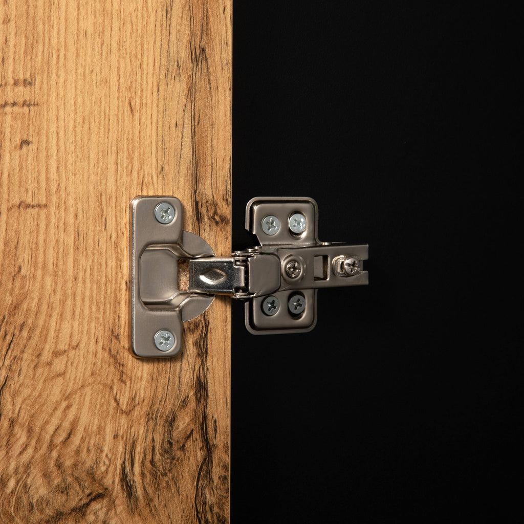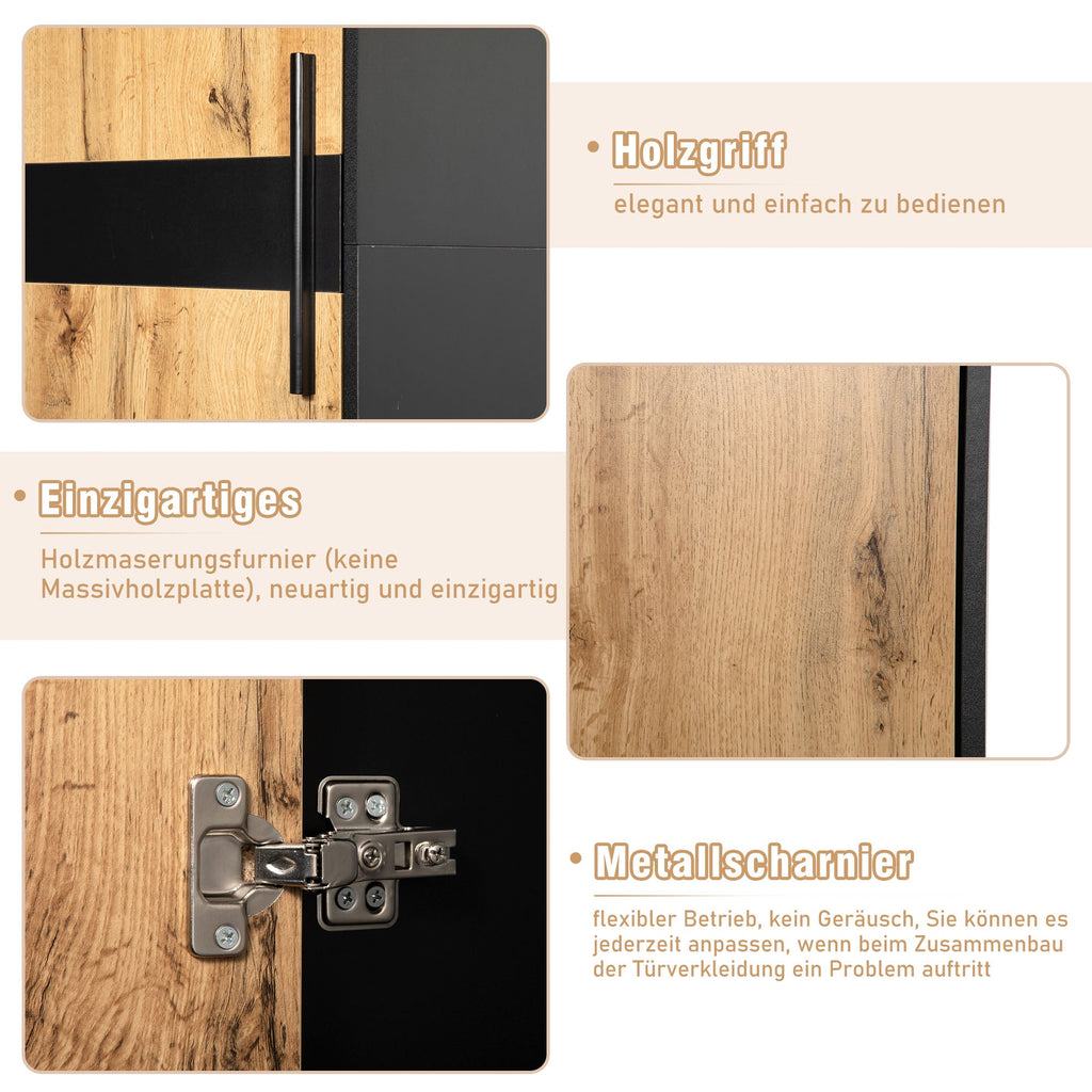 Construction & Care Instructions: Body and fronts are made of high-quality particleboard from 100% sustainable forestry with a durable and easy-care melamine coating. The handles are plastic. The mirror surface is made of mirrored glass. Wipe clean with a damp cloth. This is a modern, easy-care combination in Wotan oak decor with a black tray.