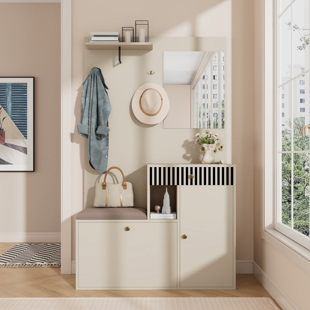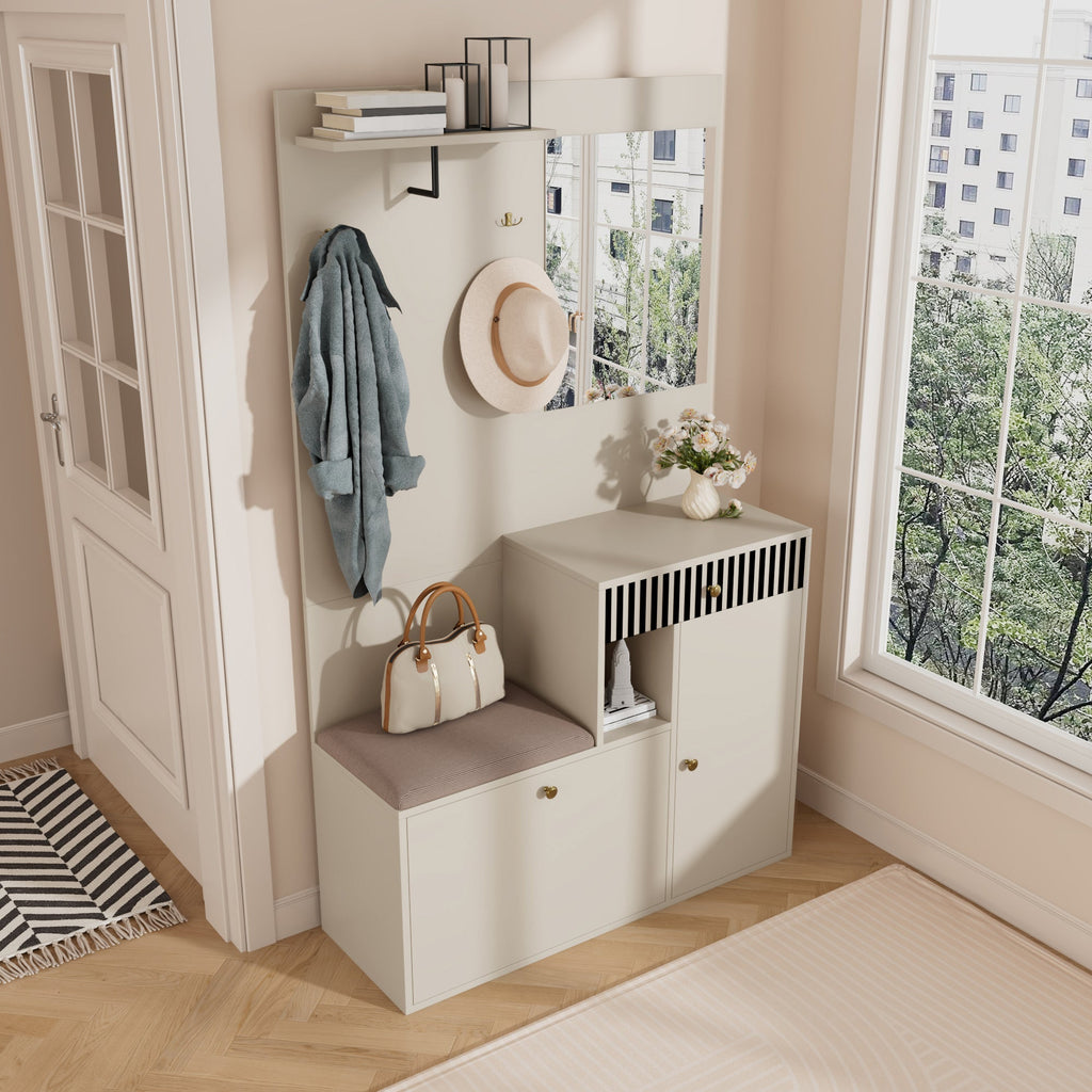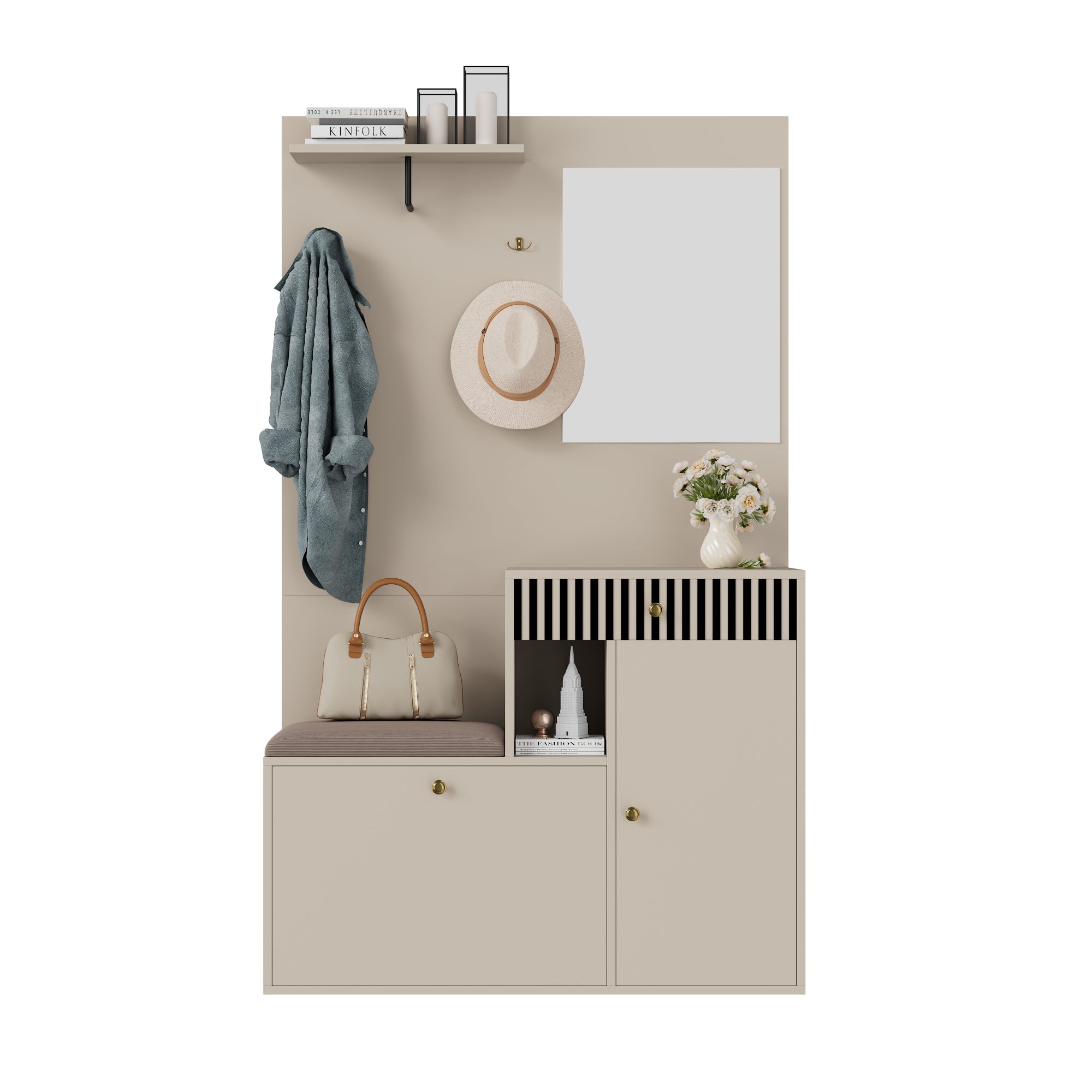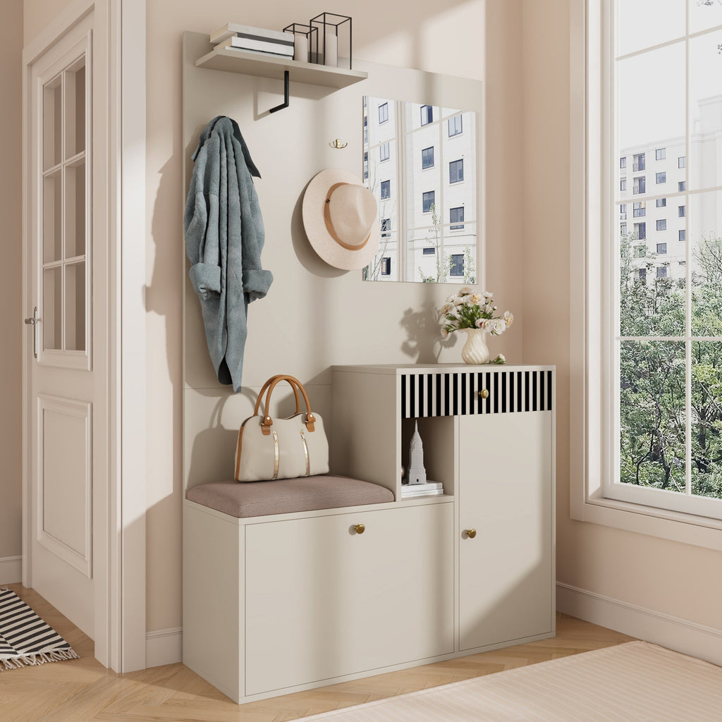 Wardrobe Set, Hallway with Mirror & Cushions, Shoe Cabinet, 110 x 185.5 x 37 cm, Compact