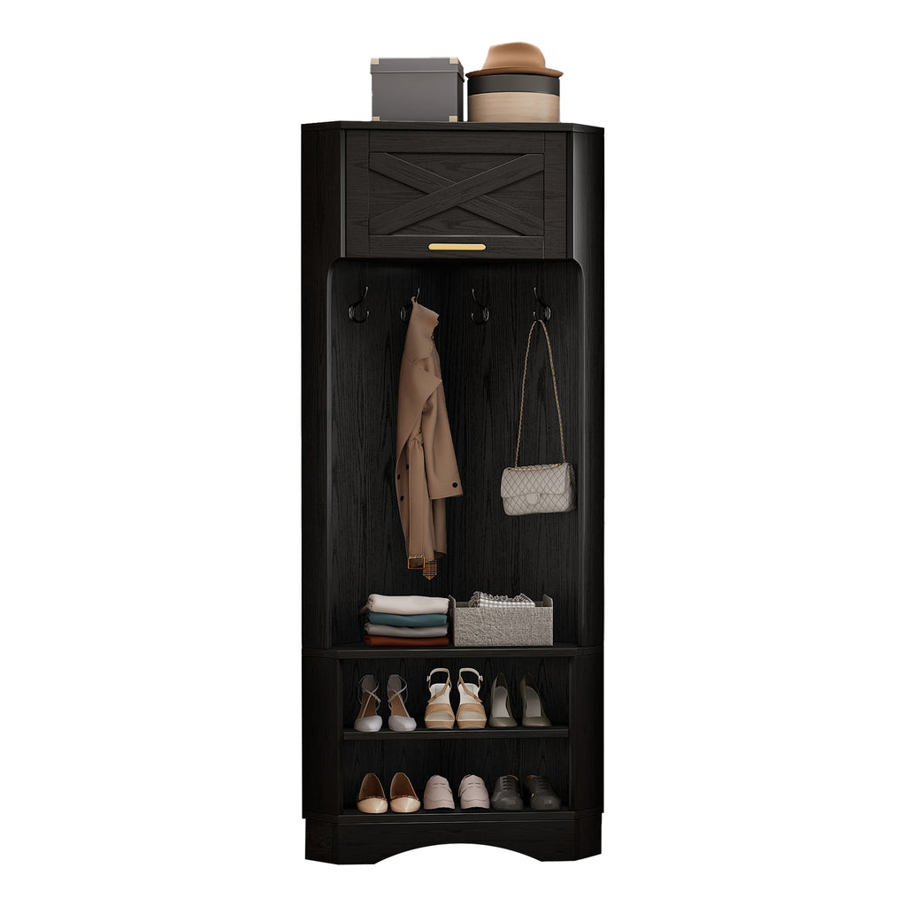 Wardrobe Set, Modern Hallway with 4 Hanging Hooks, Black