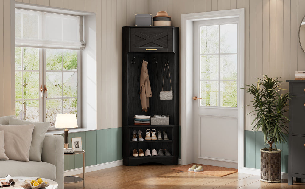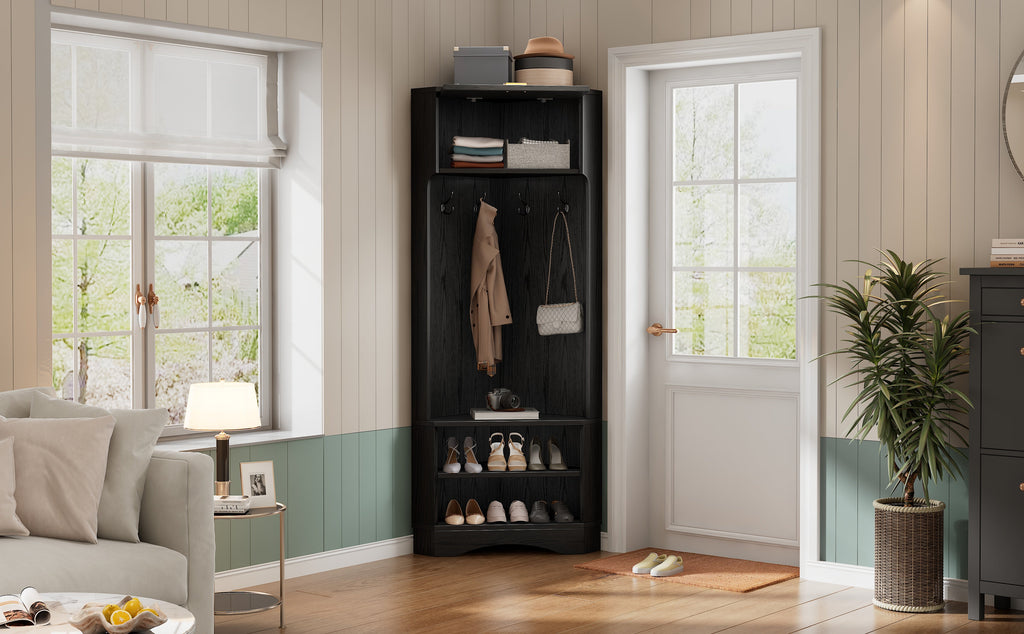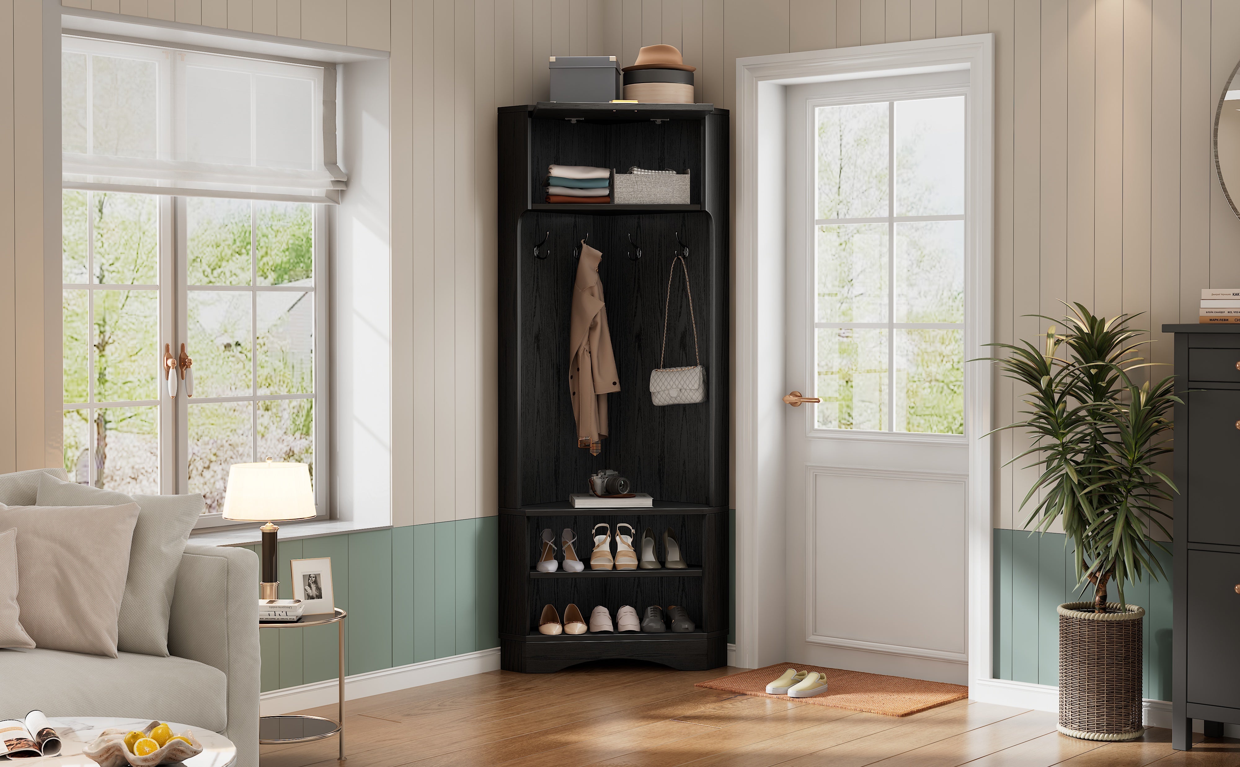 Four hooks allow you to conveniently hang coats, scarves, bags, and other items for quick and tidy storage when entering the room.