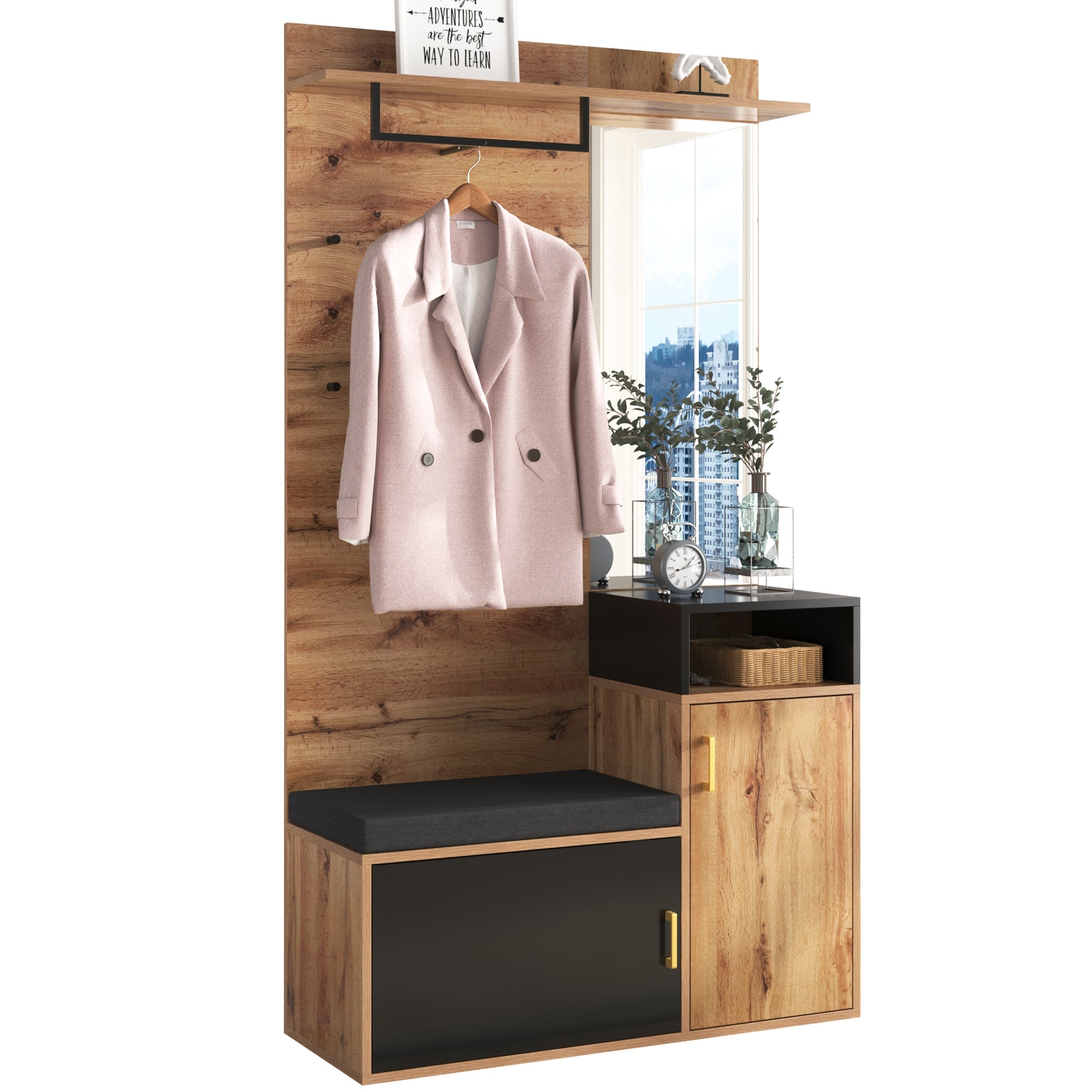 Our "Elegant Hallway & Wardrobe Set - Black & Wood" offers everything you need for an organized and inviting entryway. Order now and transform your hallway into a stylish and functional space that leaves a lasting impression.