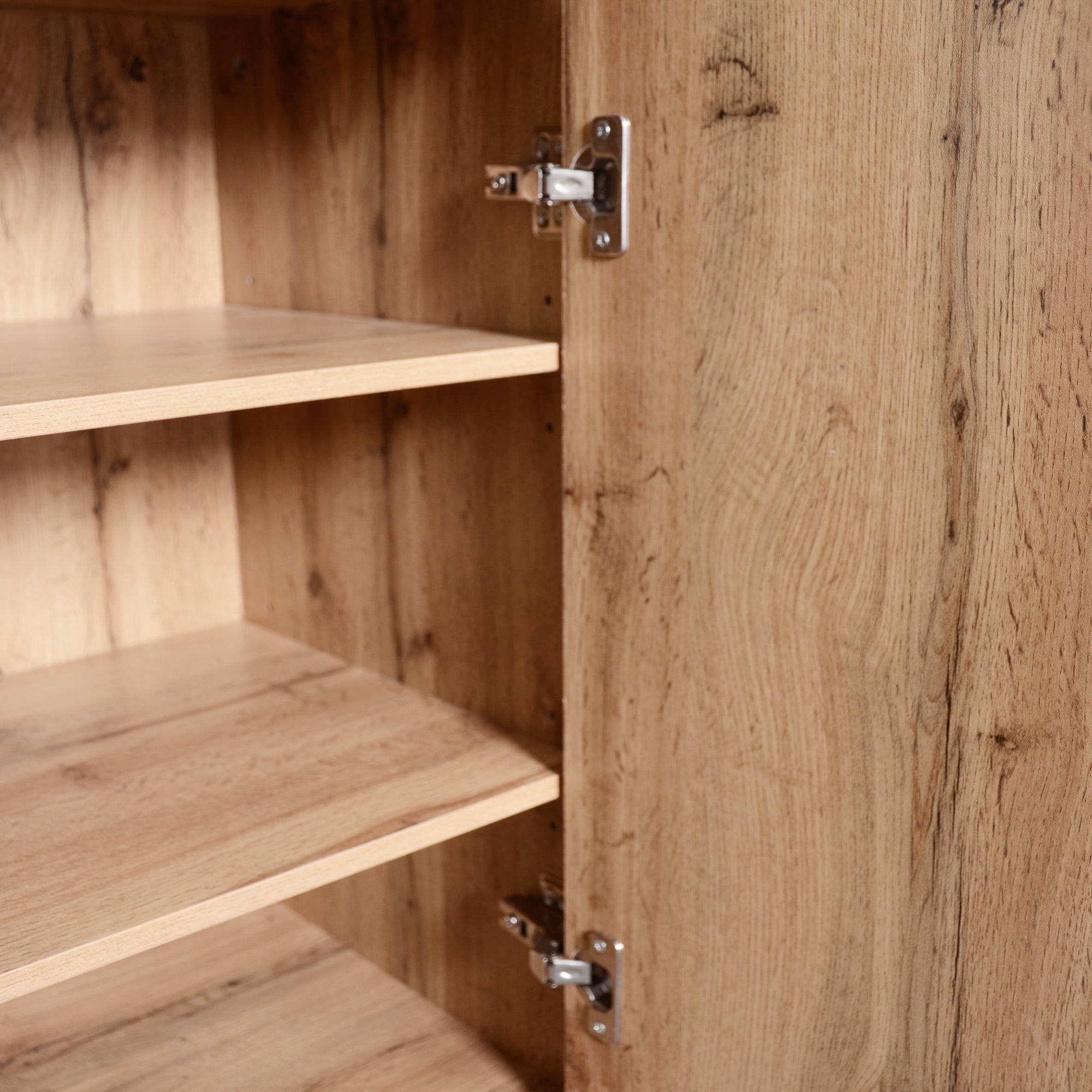 The integrated mirror on the door is not only practical but also adds visual depth to your room. Four coat hooks and an additional coat rod provide ample space for jackets, bags, and much more. The combination of functionality and aesthetic design makes this set a sophisticated choice for any entryway.