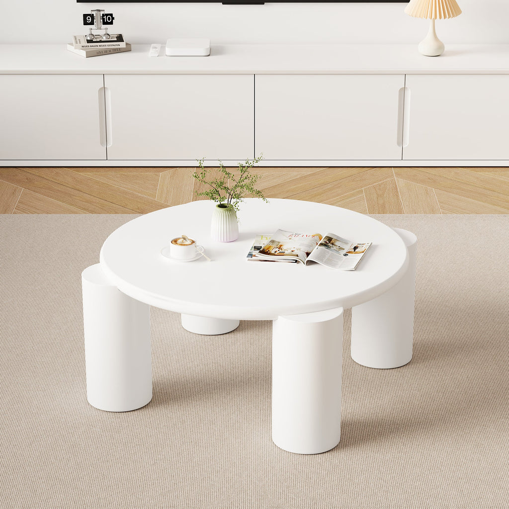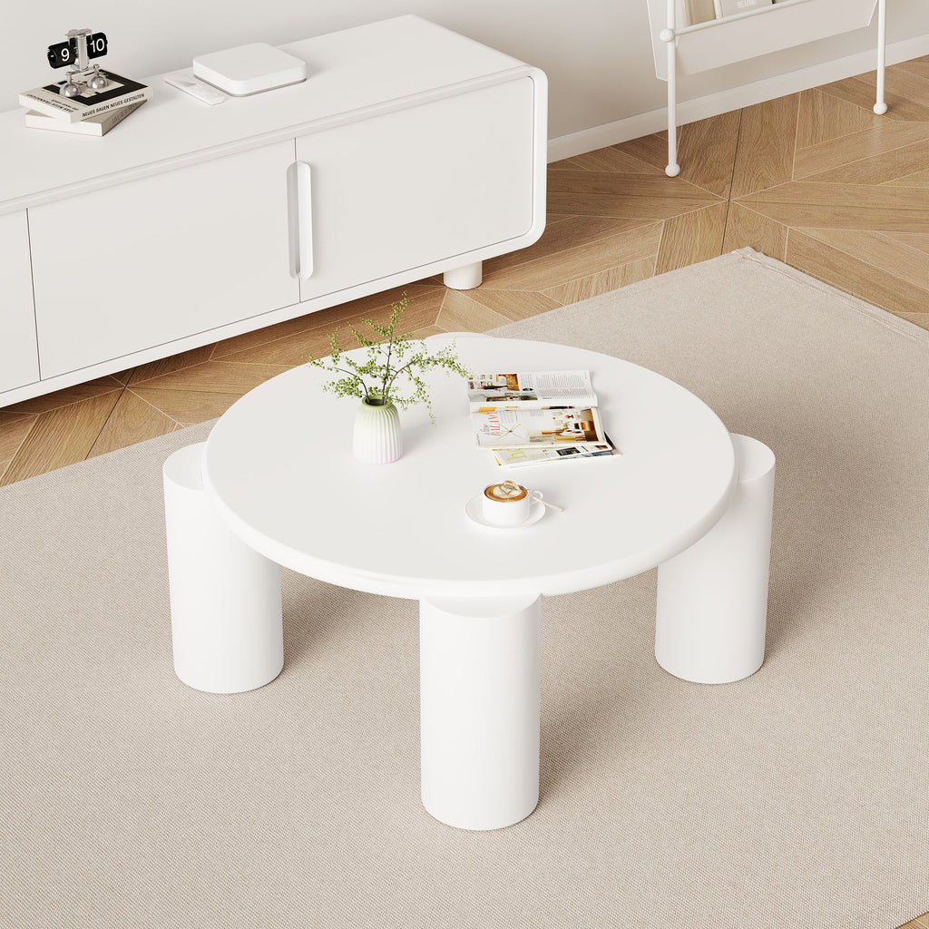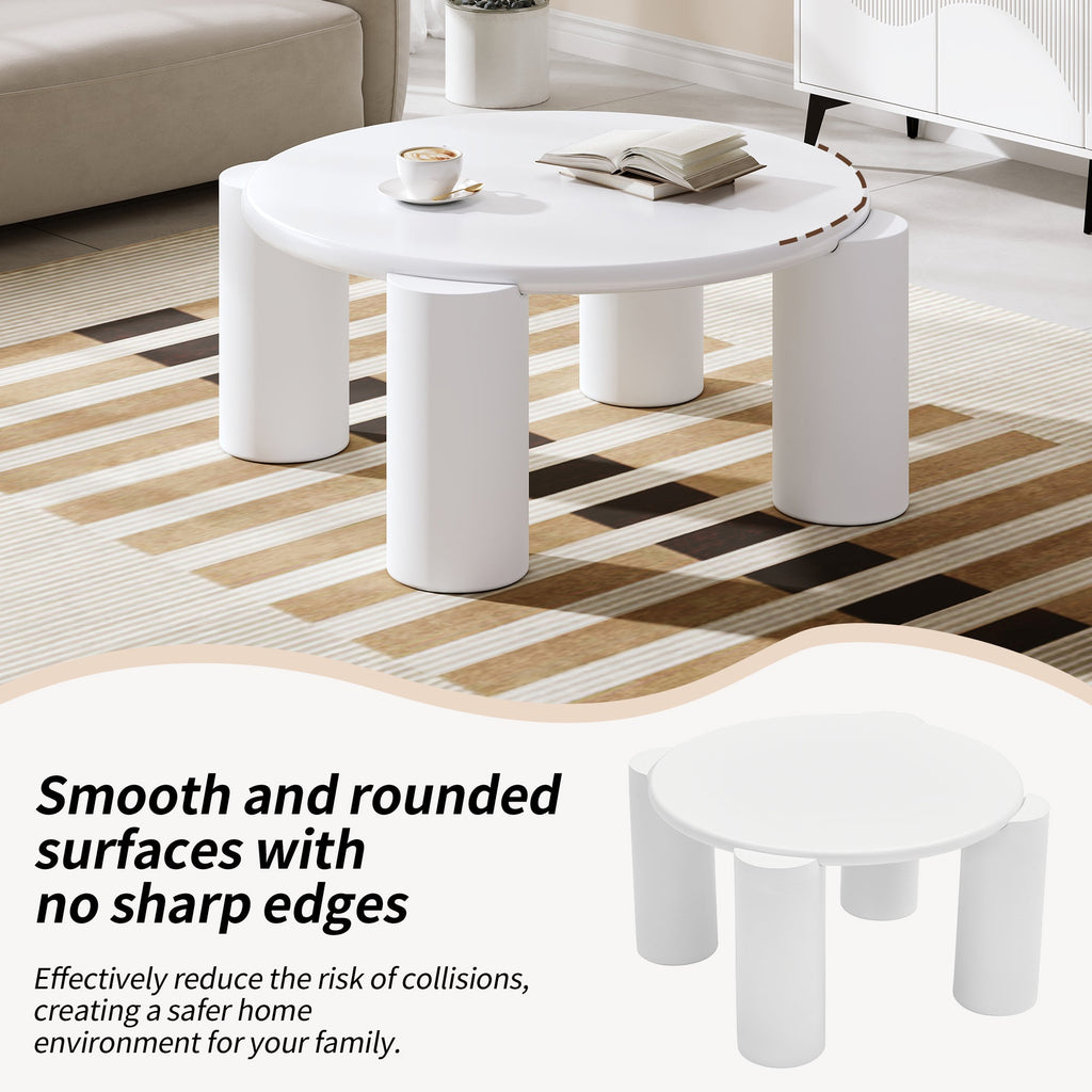 White Cloud Coffee Table, Modern Round Edge with 4 Sturdy Support Legs, Small, White
