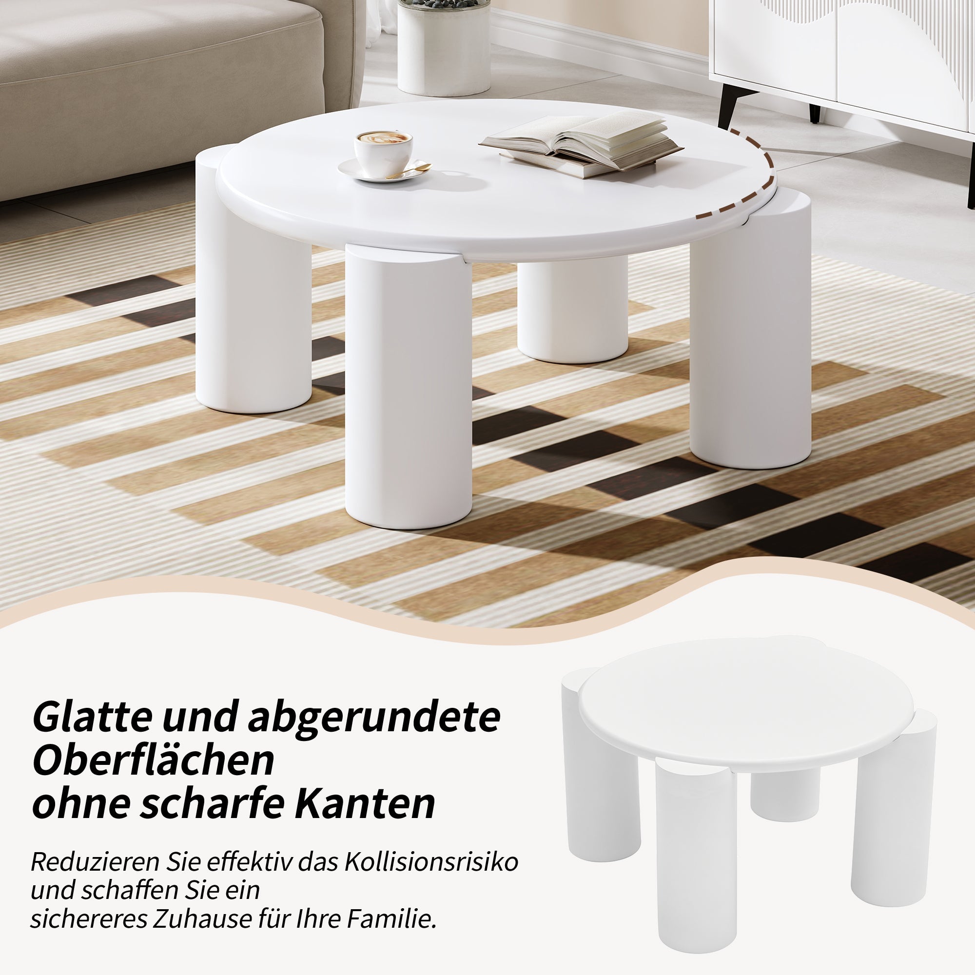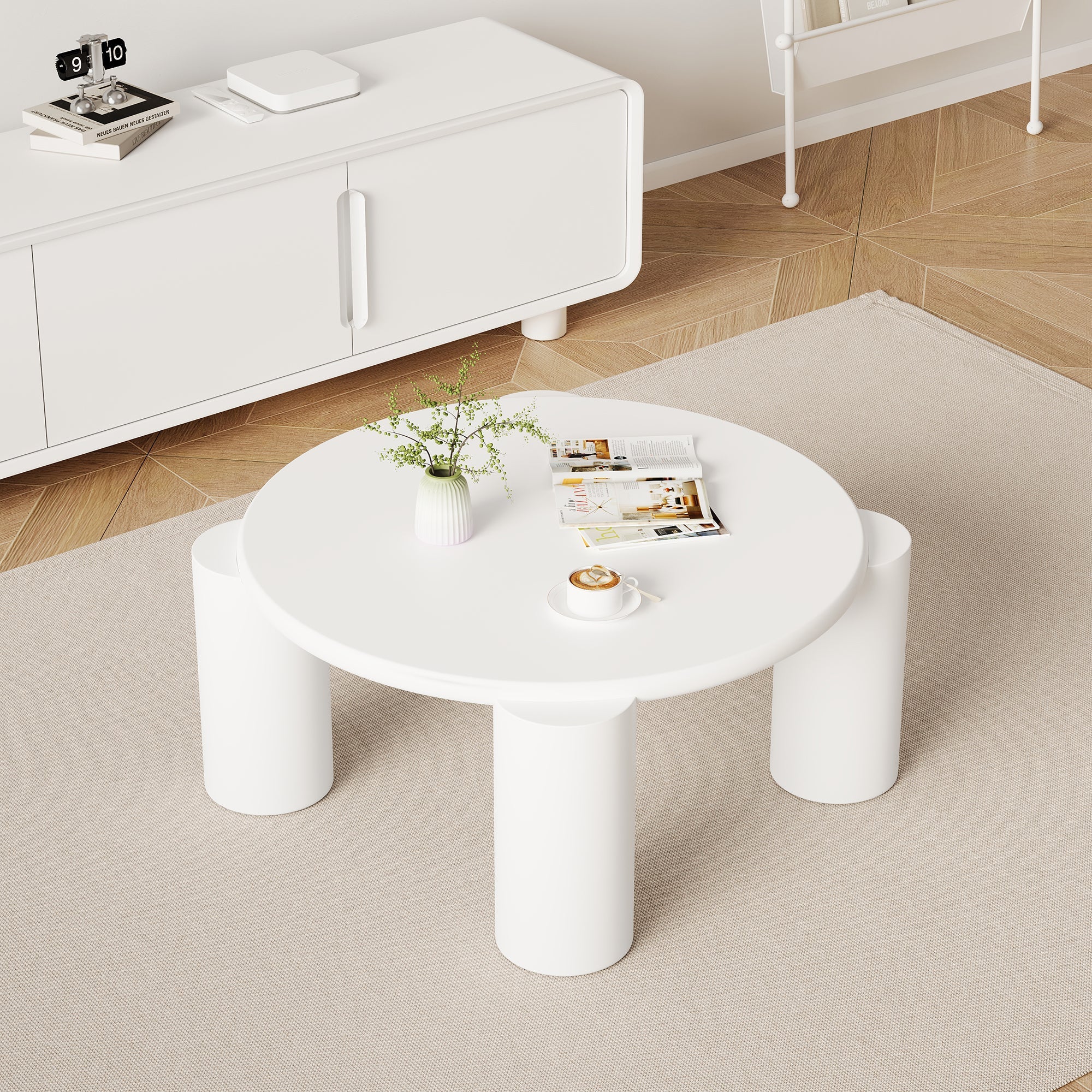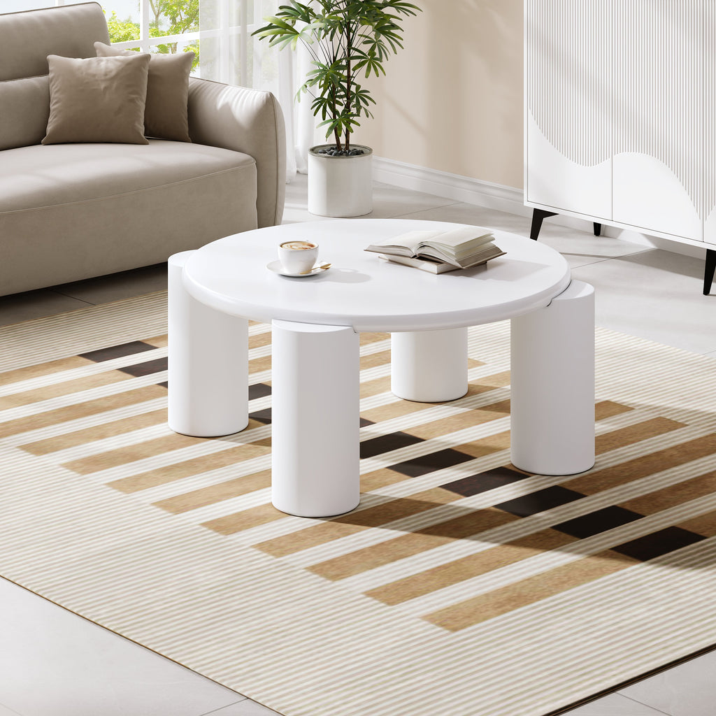 White Cloud Coffee Table, Modern Round Edge with 4 Sturdy Support Legs, Small, White