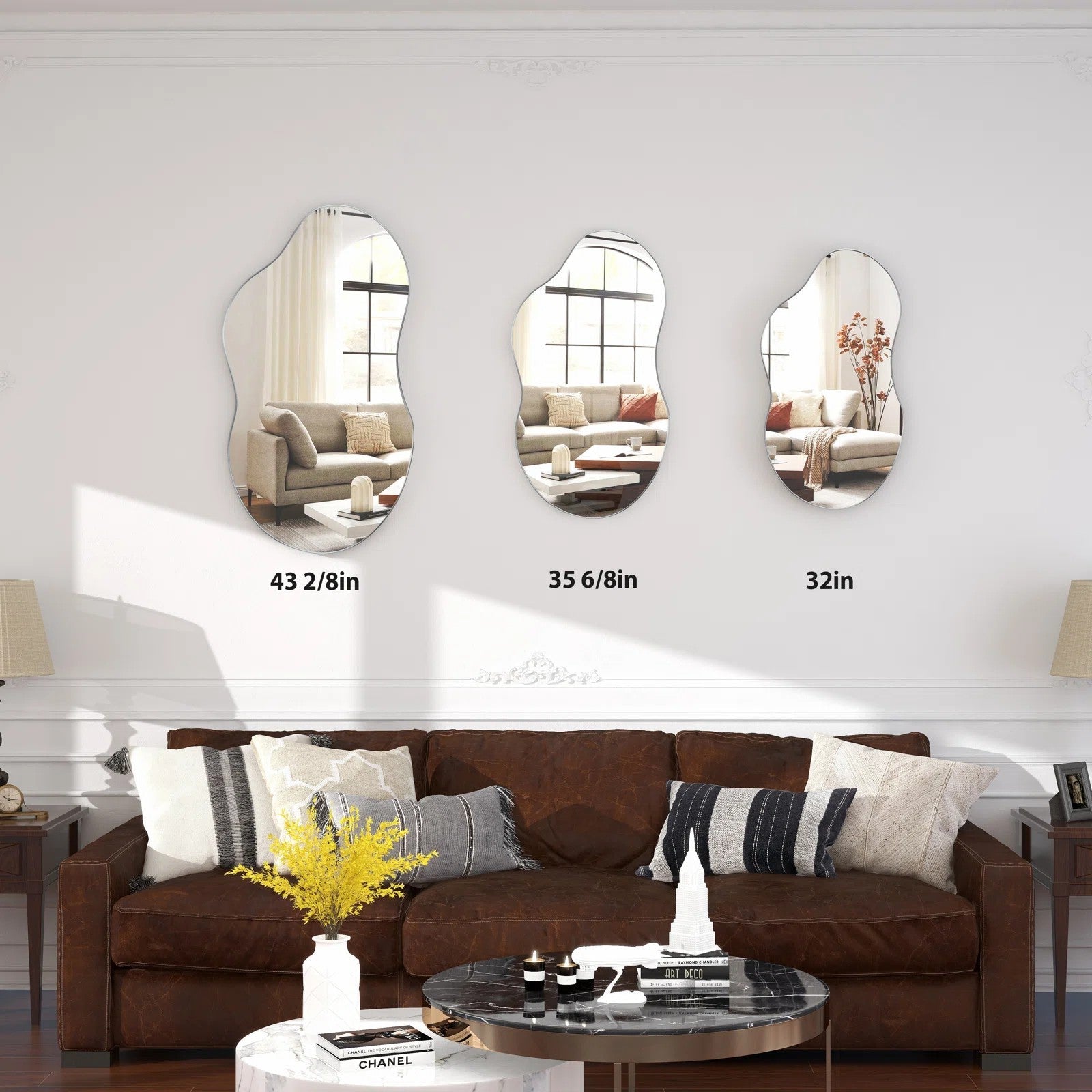 High quality, durable construction. Made with high-definition silver glass and a sturdy 3mm MDF backboard, this asymmetrical mirror is built to last. The gold metal frame adds stability and luxury, with options available in matte black, brushed silver, and brushed gold to suit any decor style.