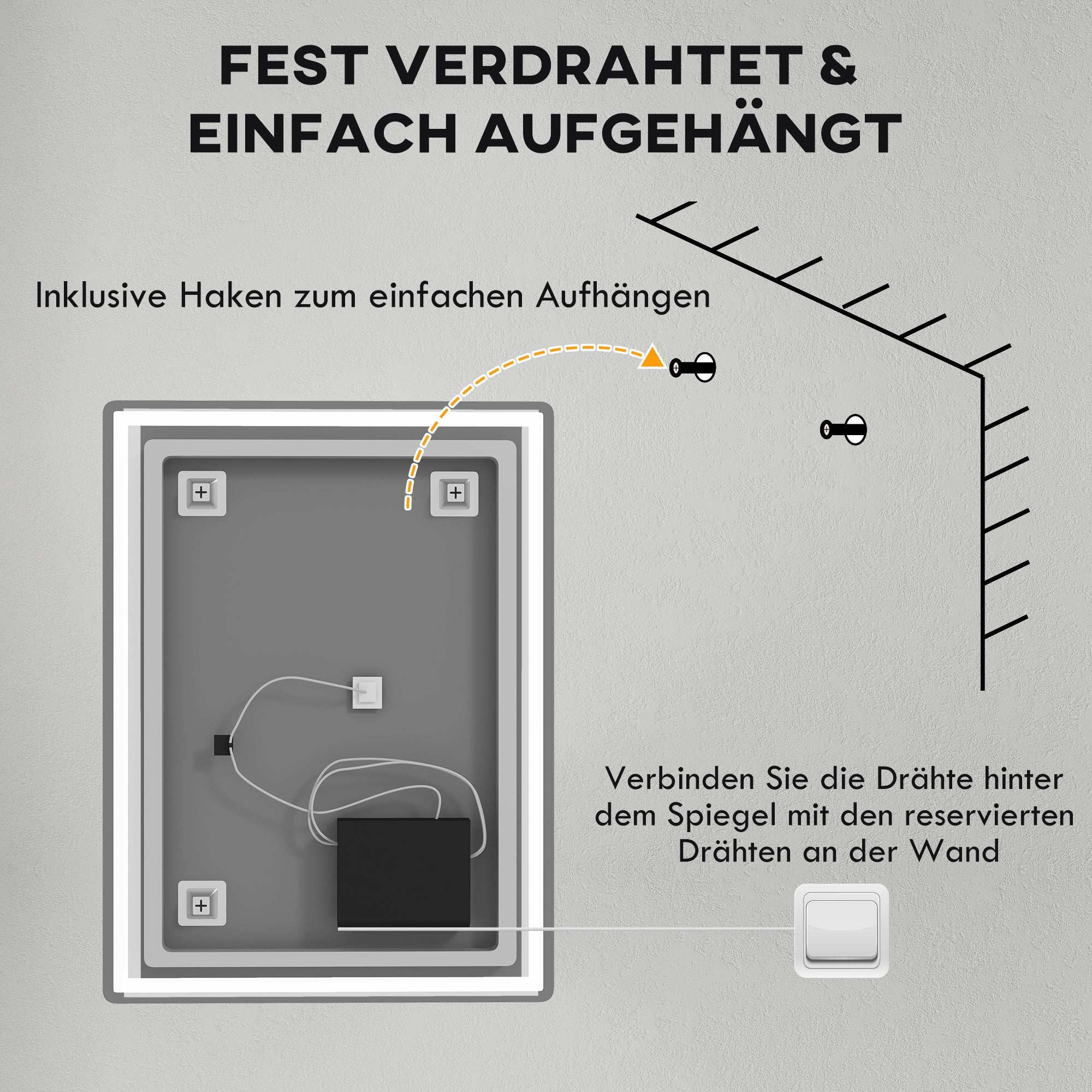 Dimmable Bathroom Mirror 80x60cm Memory Anti-Fog Surface, Glass