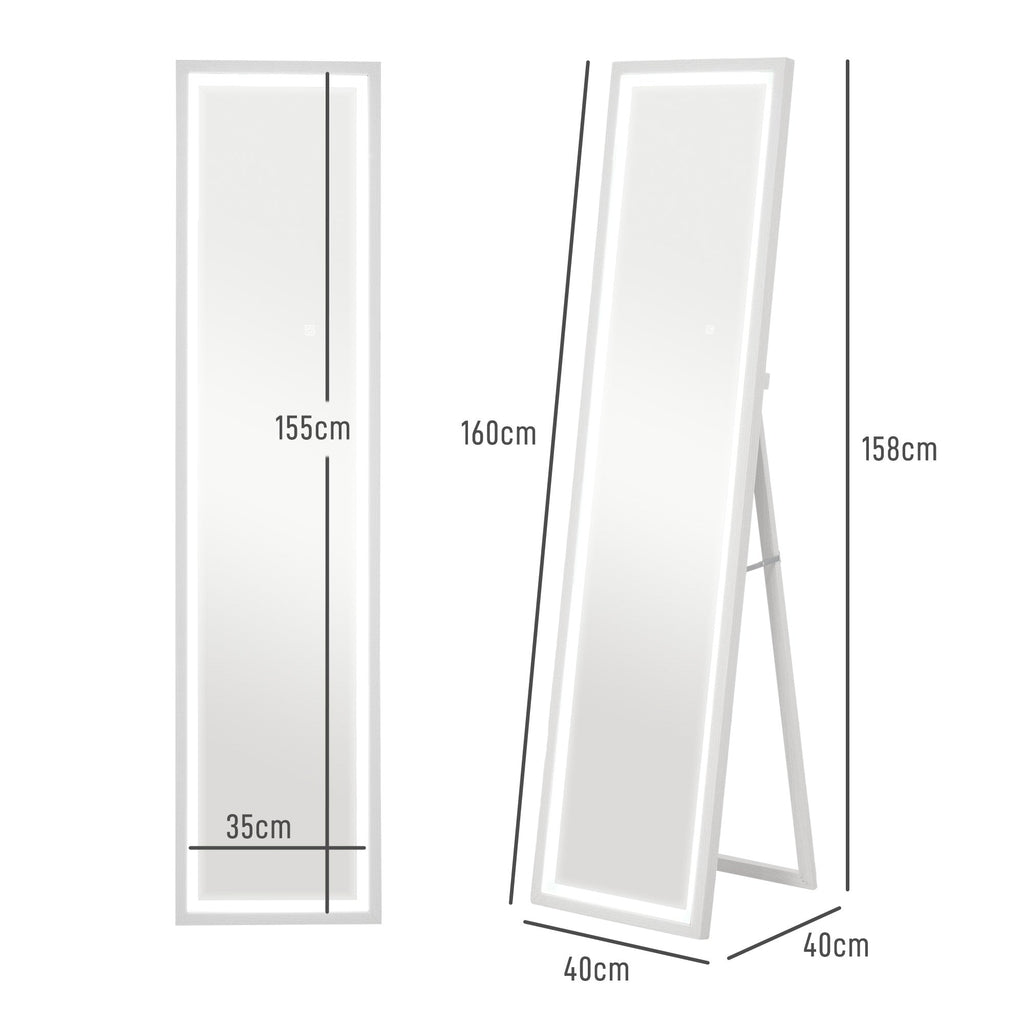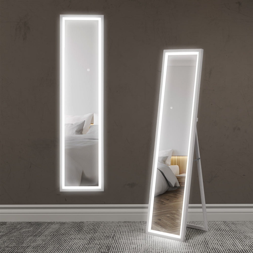 Elegant Lighting: Create a warm atmosphere with dimmable LED strips. Choose between warm white, neutral, and cool white simply with a smart touch. The standing mirror's memory function saves your last setting.