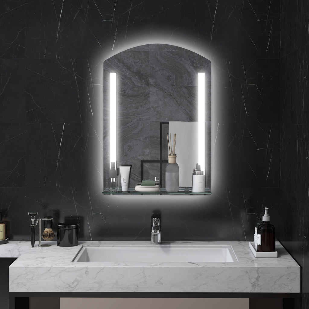 Plenty of space: Equipped with an elegant glass shelf, this bathroom mirror offers ample room for toothbrushes, cosmetics, and other essential accessories.