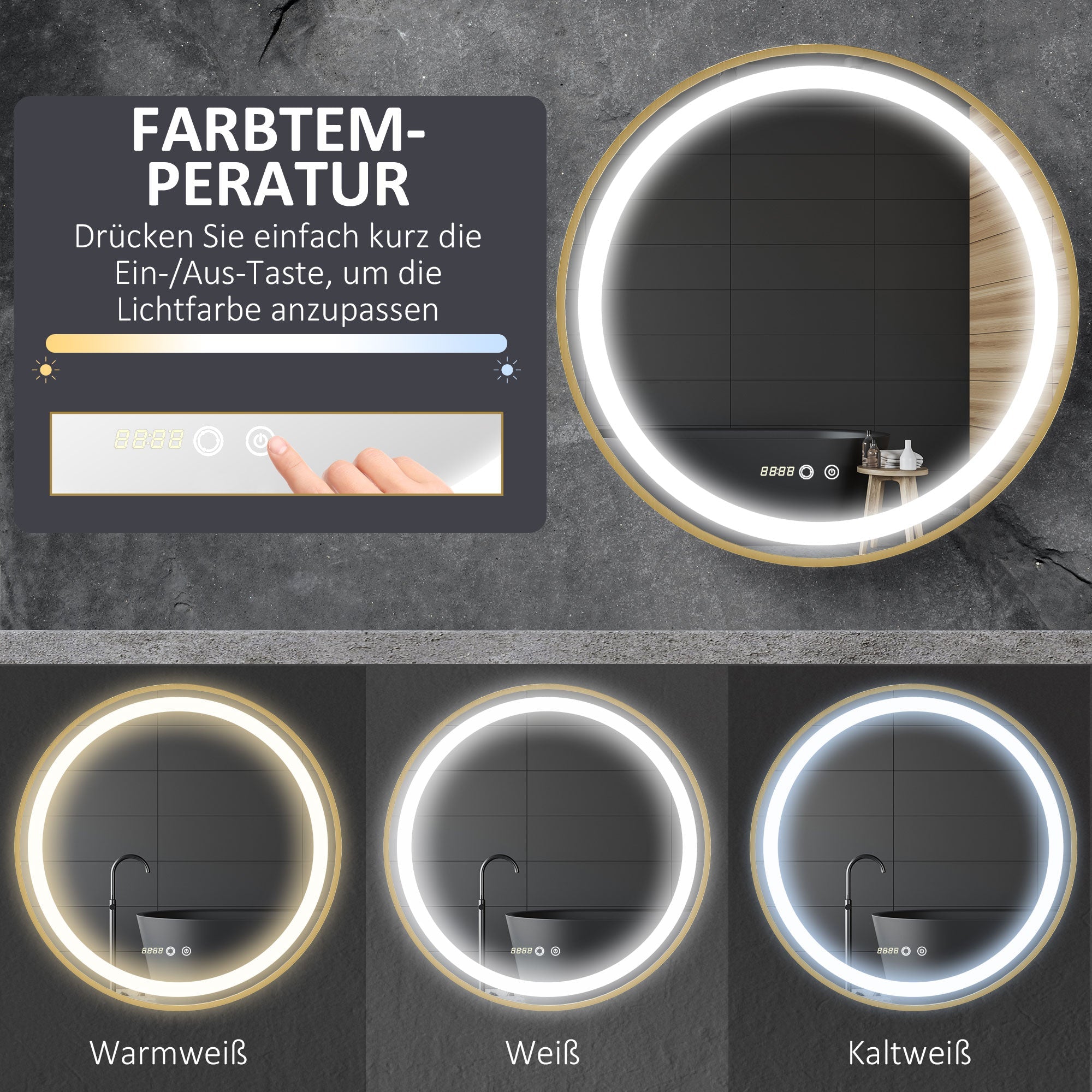Modern Design: This round bathroom mirror with a gold frame and LED lighting is modern, stylish, and brings bright, unique lighting to your home. It is also an essential part of your daily grooming routine, suitable not only for the bathroom but also for the bedroom, dressing room, or hallway.
