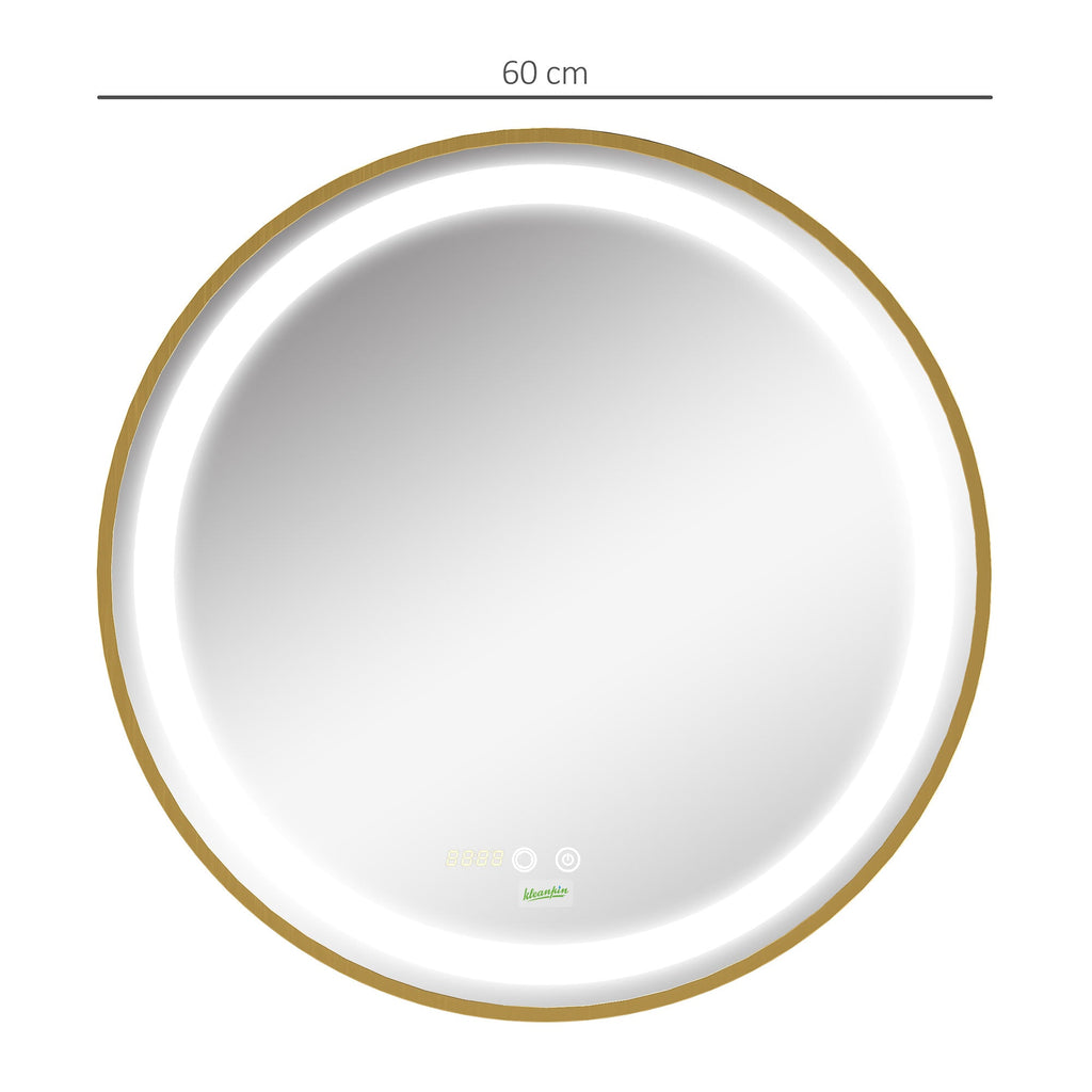 kleankin Dimmable Mirror with LED Light, 60x60cm, Aluminum Alloy