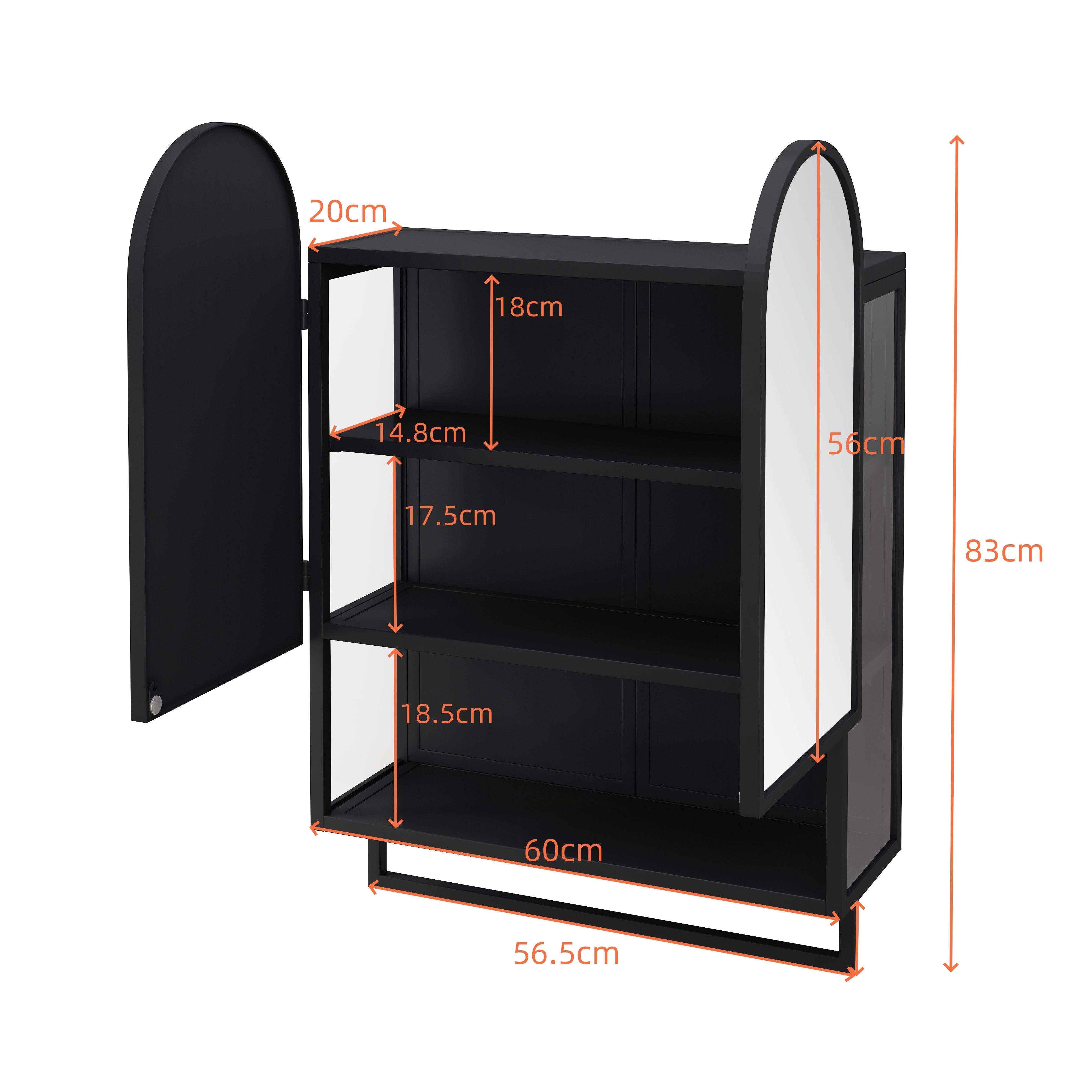 Mirror Cabinet 60CM Double-Arched 2 Doors Open Shelf Metal Black
