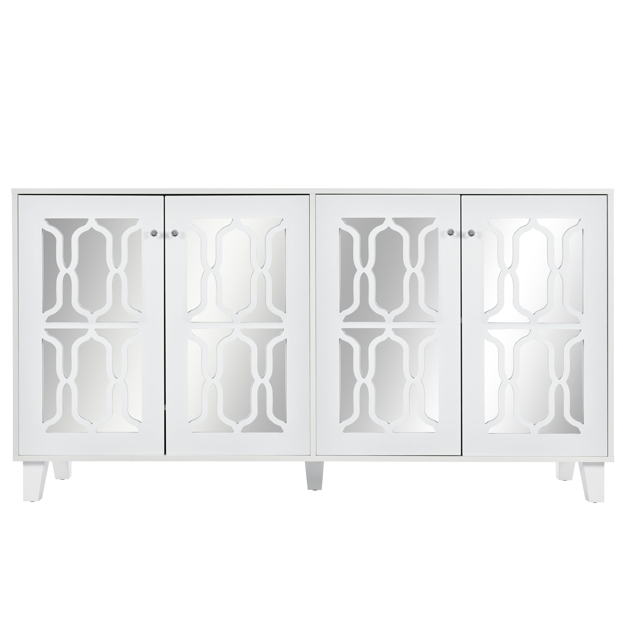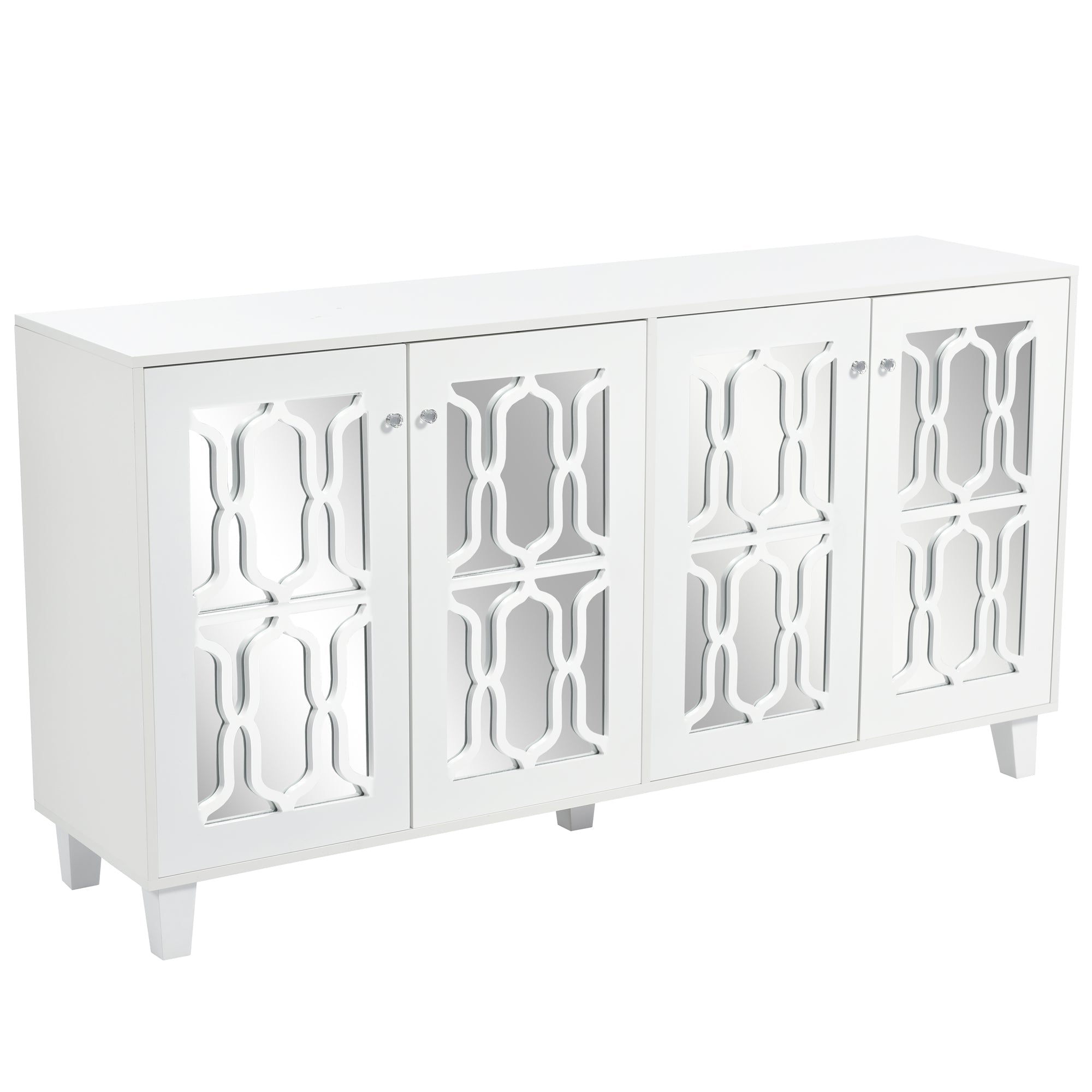 Sideboard, Mirrored with Crystal Handles, Four Doors, White