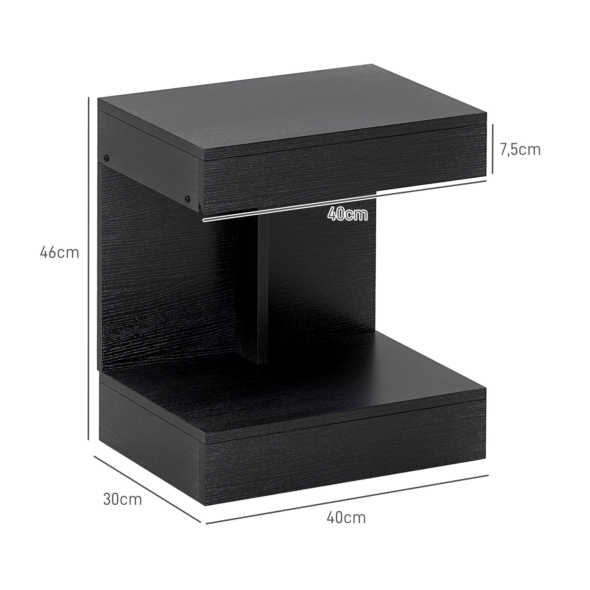 Bedside Table with Drawers, Shelf, 40 x 30 x 46 cm, Black