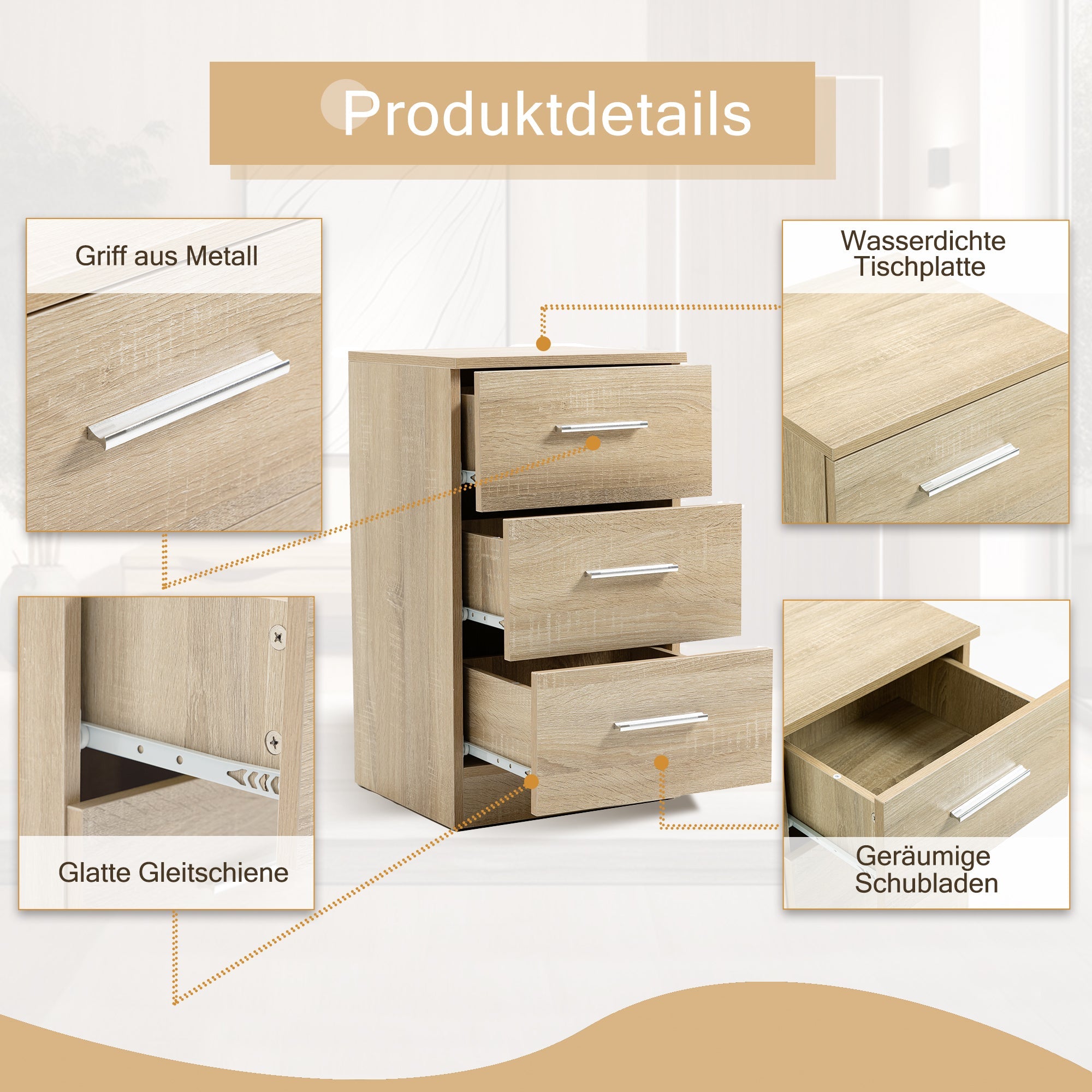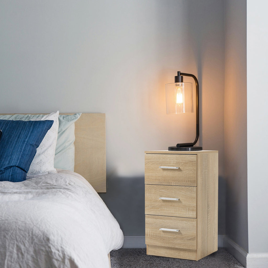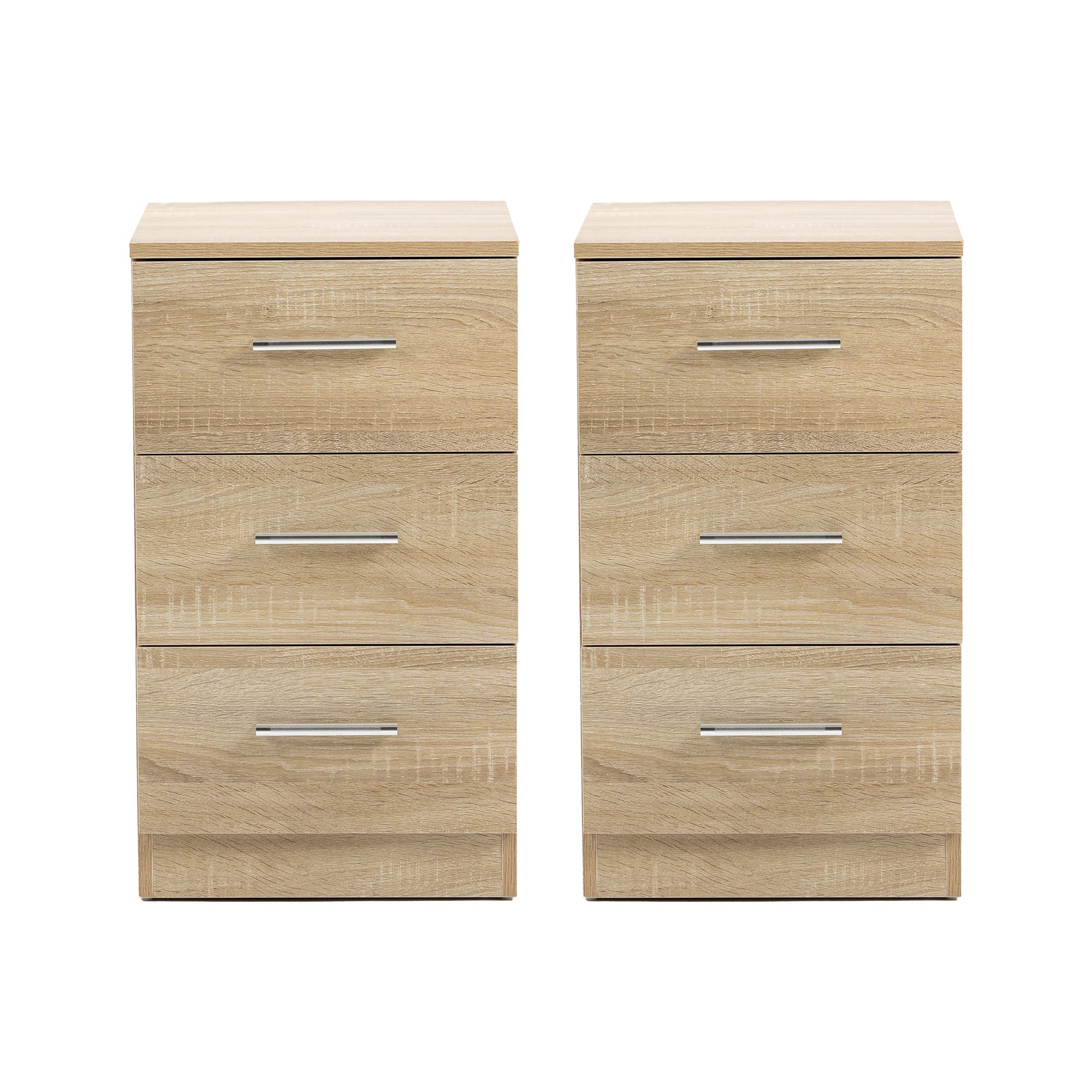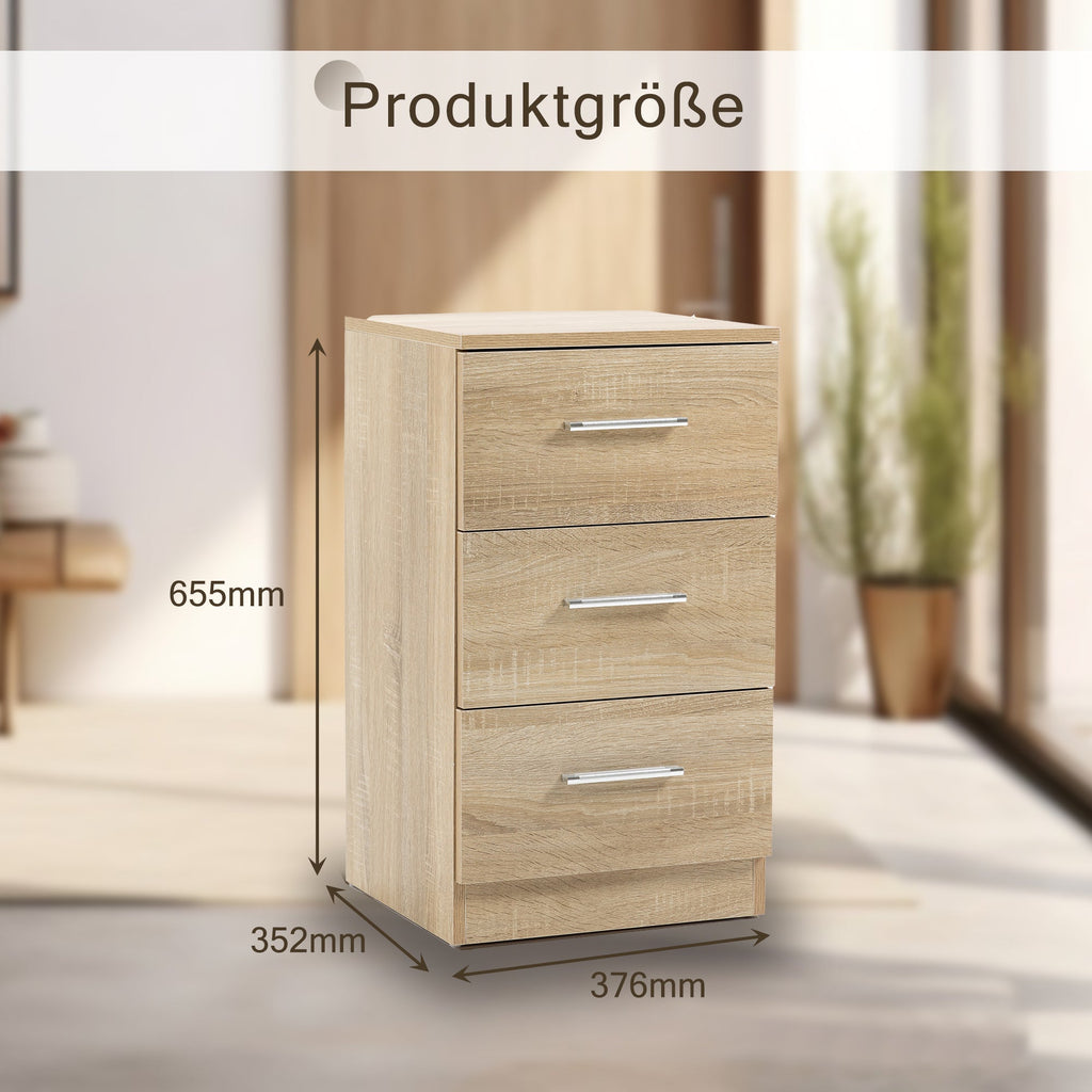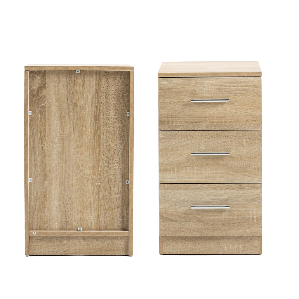 Bedside Tables, Set of 2 with 3 Drawers, Chipboard, Natural Color