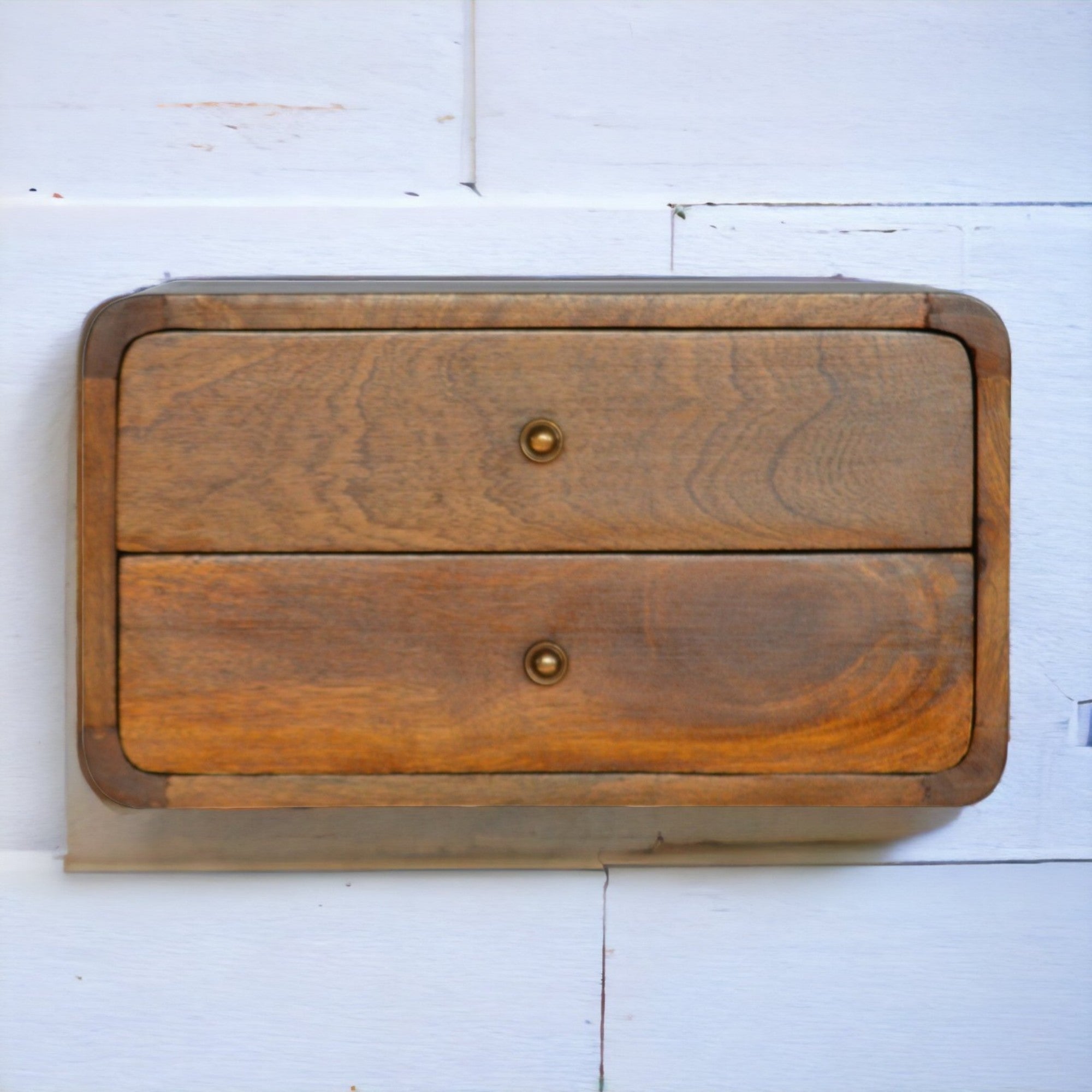Solid Wood Bedside, Floating Curved with 2 Drawers, Dark Brown