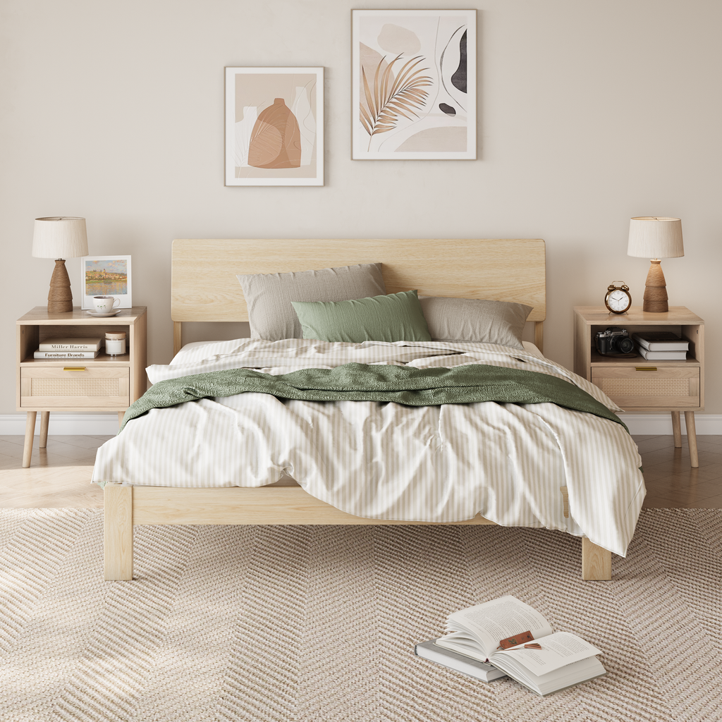 Rattan Design: This wooden bedside table features a bohemian style, adding romantic charm to your bedroom. The authentic, handcrafted rattan material of these bohemian bedside tables fills your bedroom with freedom and spontaneity, making it easier and more personal in a modern life dominated by stress and anxiety.