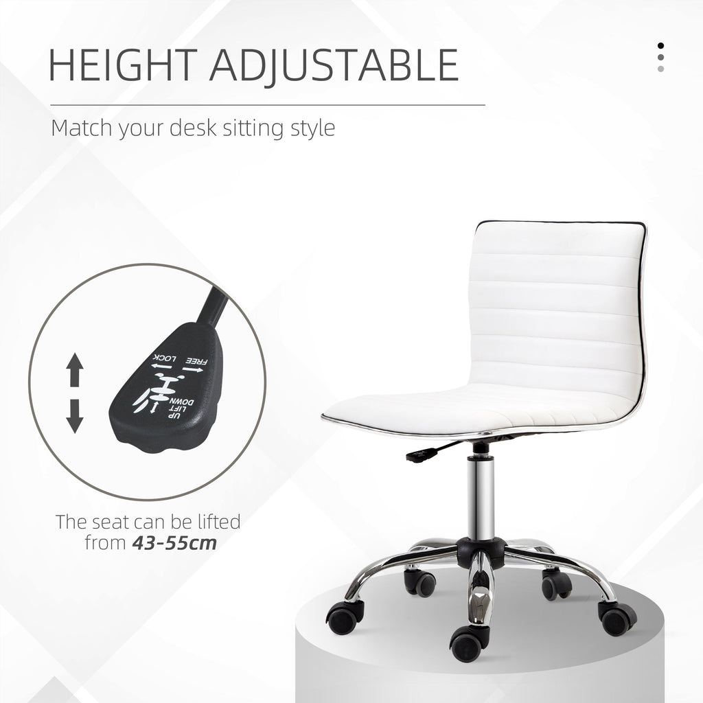 Adjustable Swivel Office Chair Armless Mid-Back Chrome Base PU Leather - White