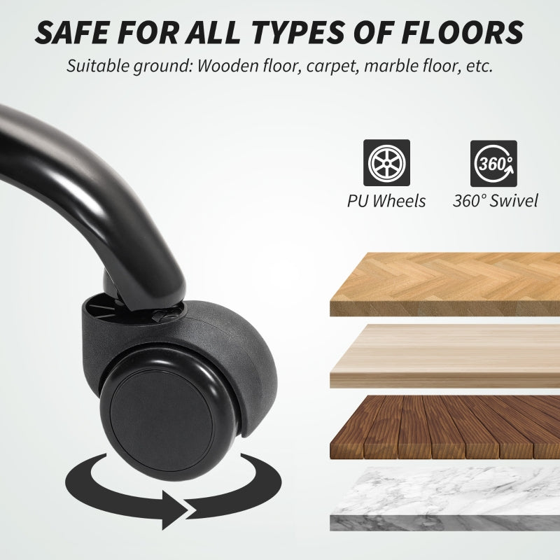 Five silent-moving wheels glide smoothly across any floor without making marks or scratches, making it easy to move the chair around whenever needed.