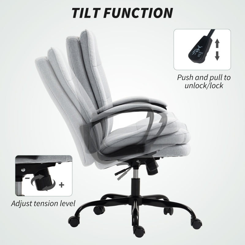 Double Padded Office Chair Adjustable Tilt and Height Linen-Look Light Grey