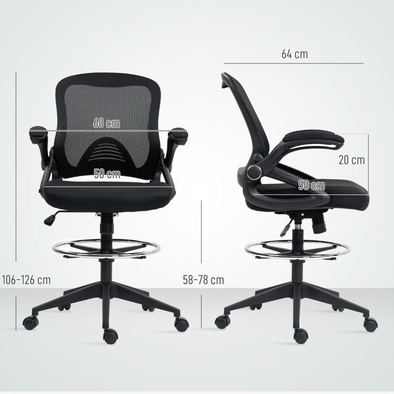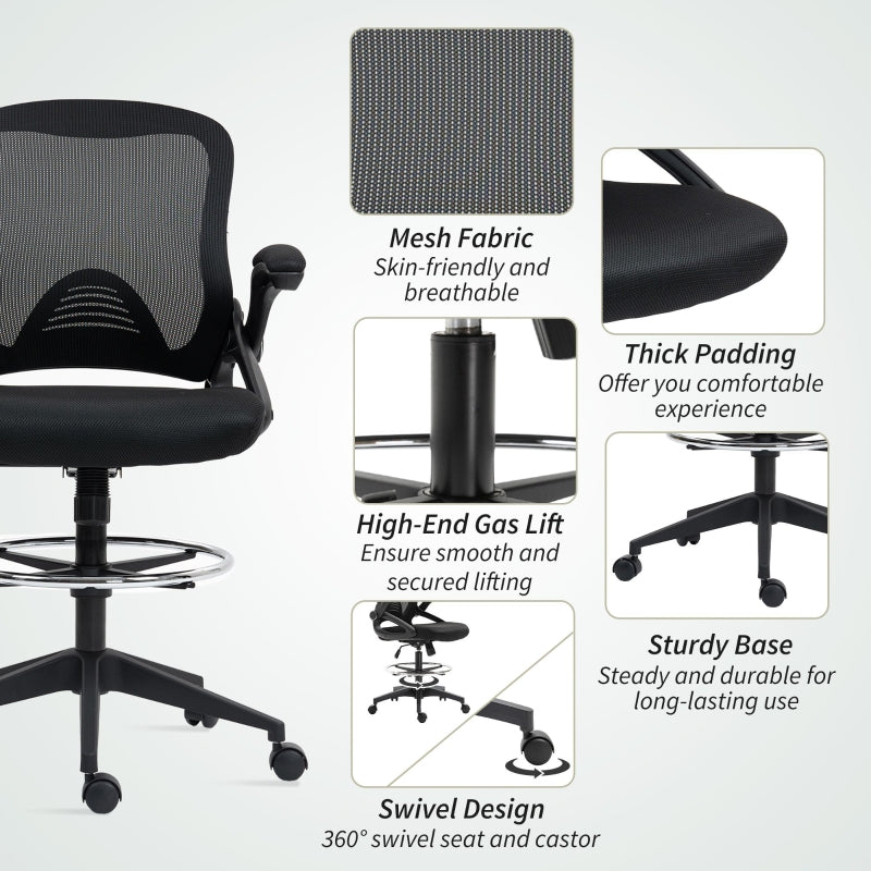 Drafting Chair, Flip-up Armrest Mesh Office Stool Height Adjustable, Black