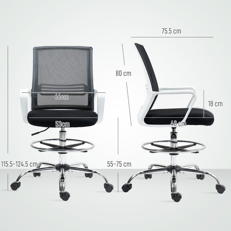Draughtsman Drafting Chair, Ergonomic Mesh with Lumbar Support and Adjustable Foot Ring, Black