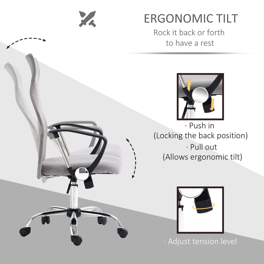 Ergonomic Office Chair Adjustable Height Tilt Mesh Light Grey
