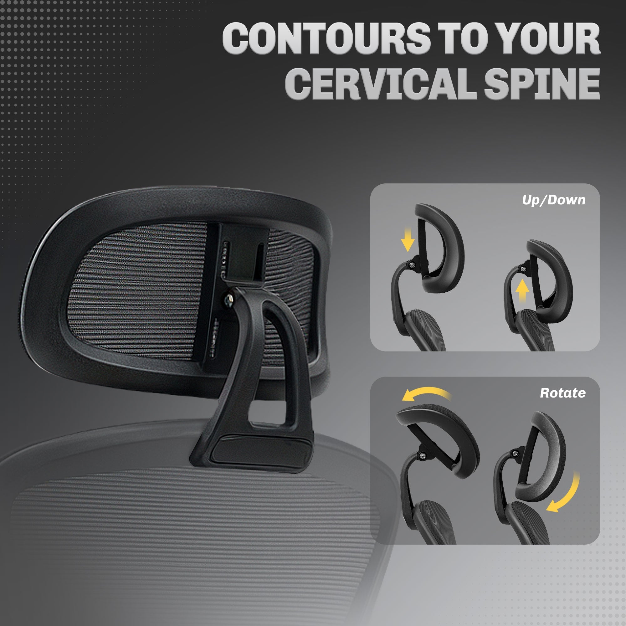 Enjoy precision lumbar support that moves up and down to fit your back, complemented by a rotatable, height-adjustable, and removable headrest that adjusts effortlessly for personalized neck and head comfort in this swivel chair.