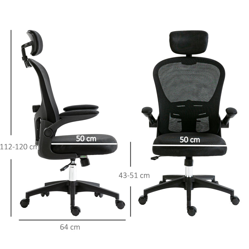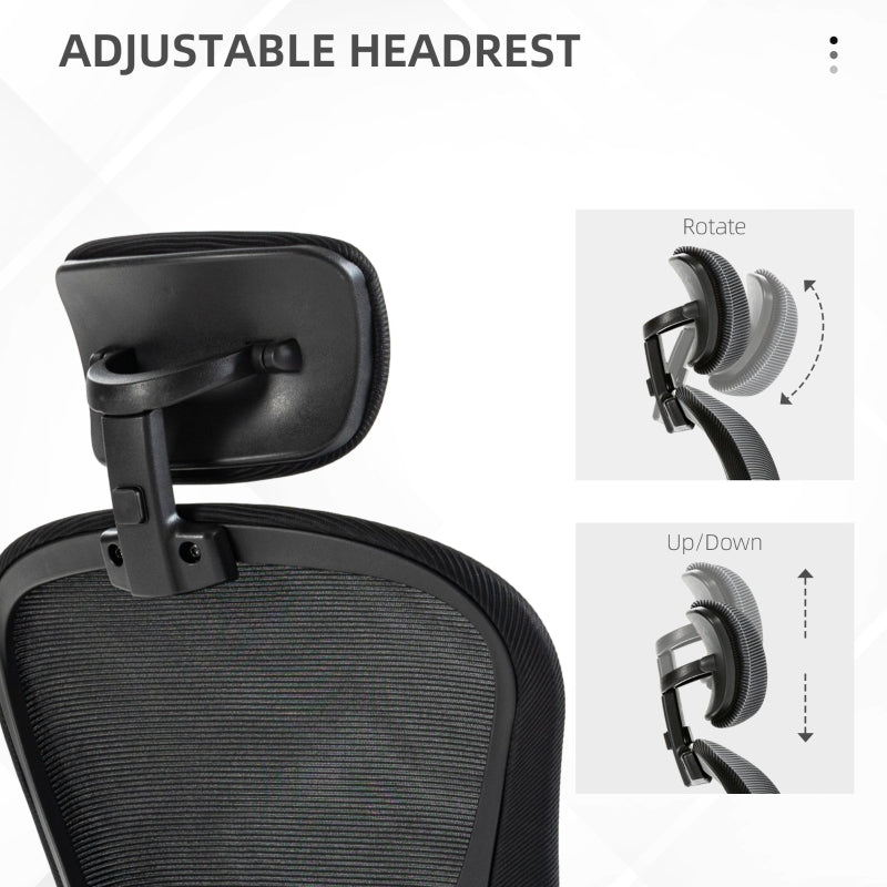 Multi-Adjustable Office Chair, Lumbar Support Headrest Mesh Back - Black
