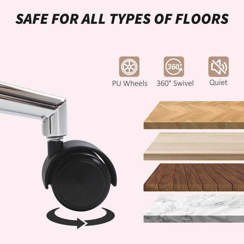 The five wheels make this PC chair easy to move around on many different floor types, whether seated or empty. The swivel seat moves with your body motion as you work.