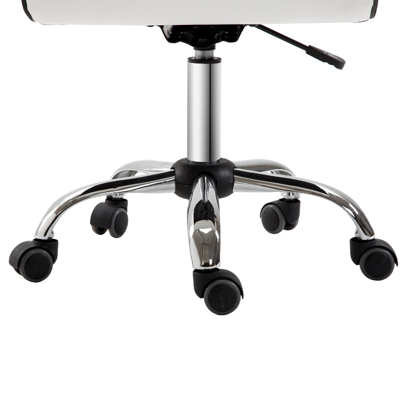 Elegant White Faux Leather: The white faux leather of the desk chair features stylish stitching on the backrest and seat, highlighting the elegant design.