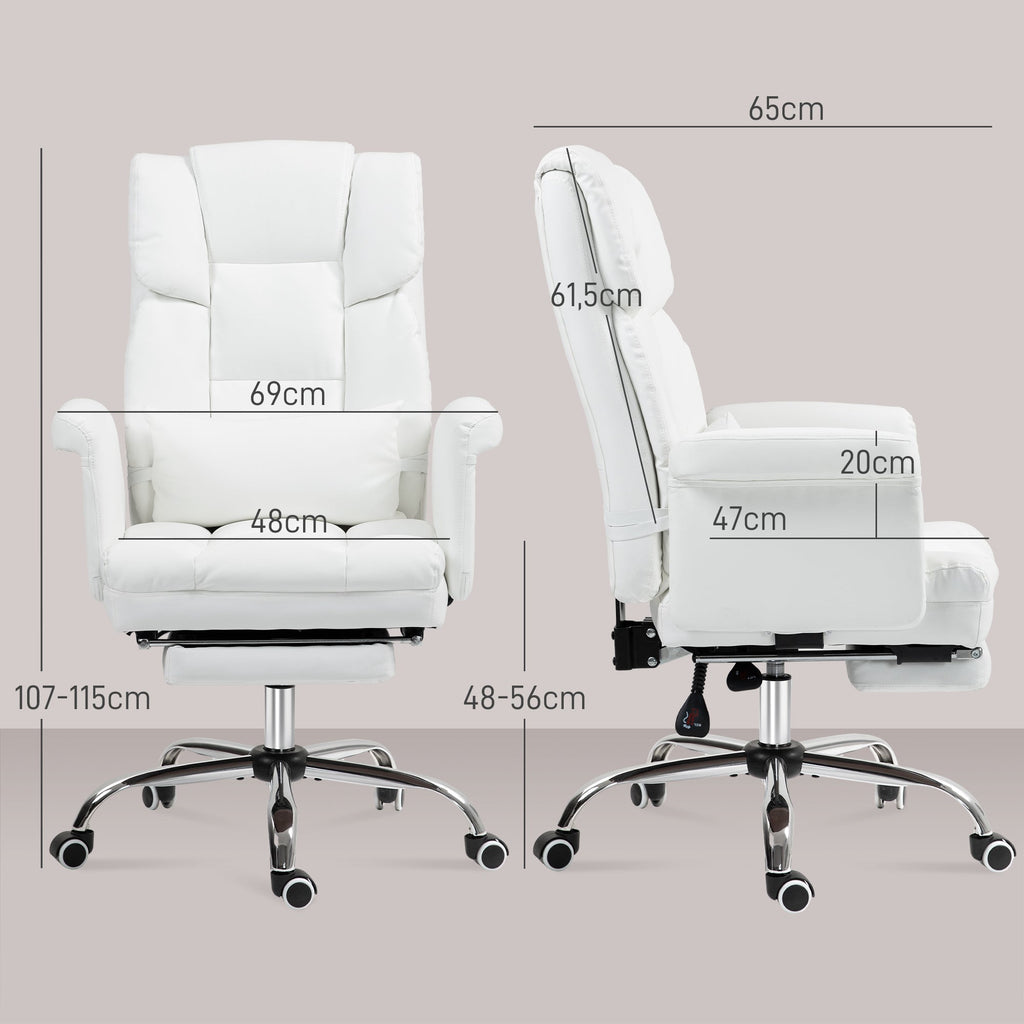 Office Chair, Ergonomic Reclining with Footrest, White Faux Leather