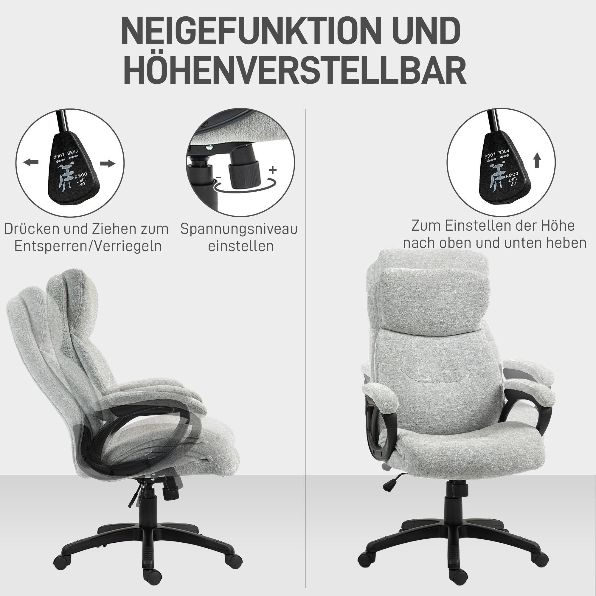 Office Chair, Rocking Function, Ergonomic, Height-Adjustable, Padded, Light Grey