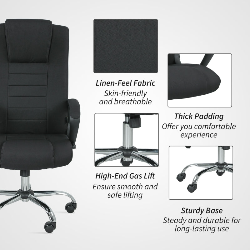 Comfort Seating: This home office chair features breathable, wear-resistant linen-look fabric, a contoured back, and thick seat padding. Its ergonomic design supports healthy posture and keeps you comfortable through long working hours.