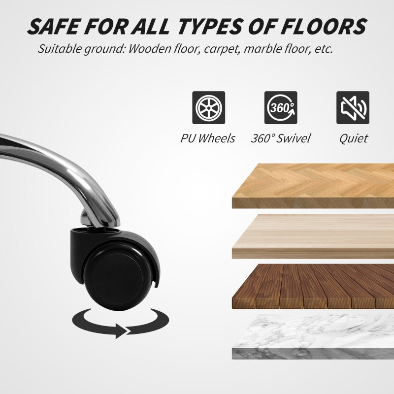Smooth Mobility: Equipped with a 360° swivel seat and PU wheels that glide smoothly on any floor, this desk chair allows for effortless movement around your workspace without standing up.