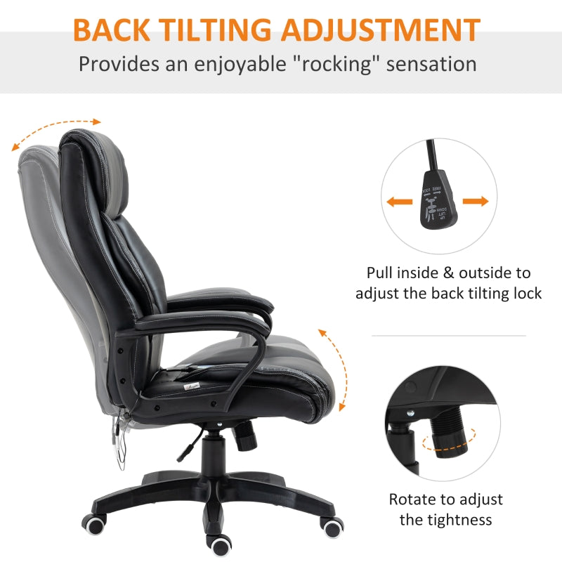 Office Chair with 6-Point Massage, Tilt Function, PU Leather, Black