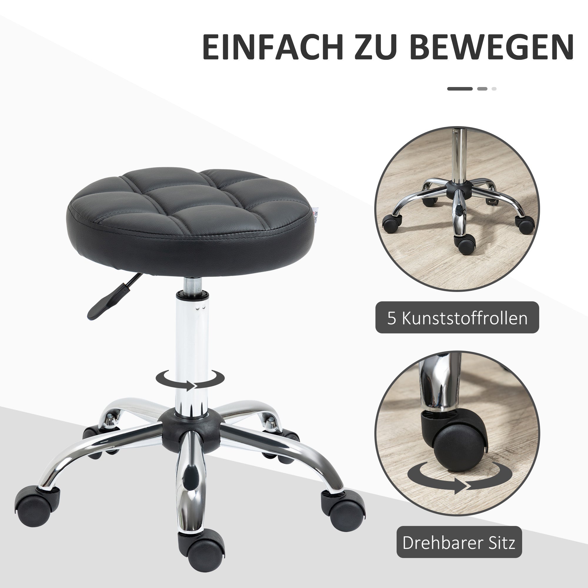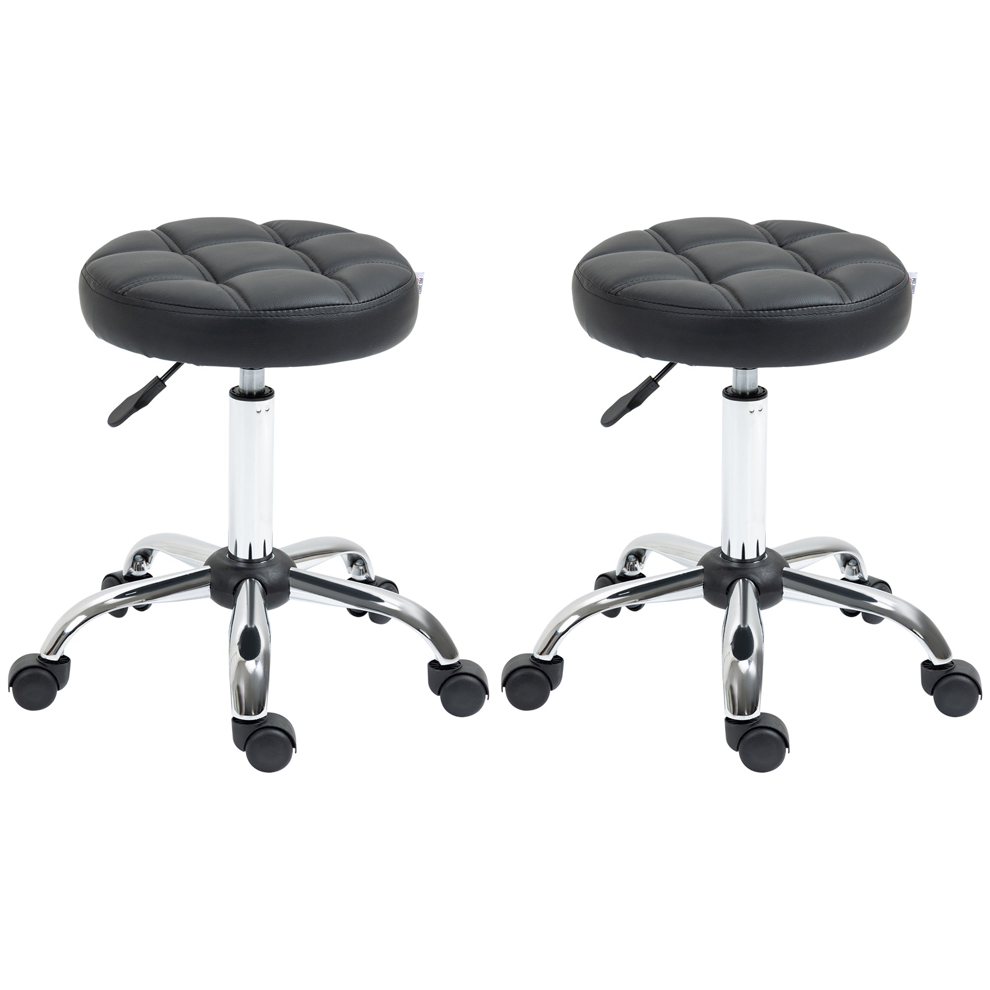Salon Stools, Height Adjustable Swivel Rolling, Faux Leather Black