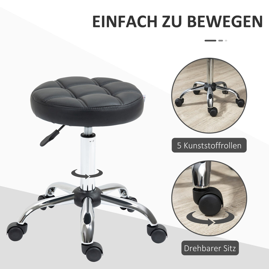 High comfort: Enjoy maximum comfort thanks to the rolling stool's round, foam-filled seat, covered in smooth, easy-to-clean synthetic leather.