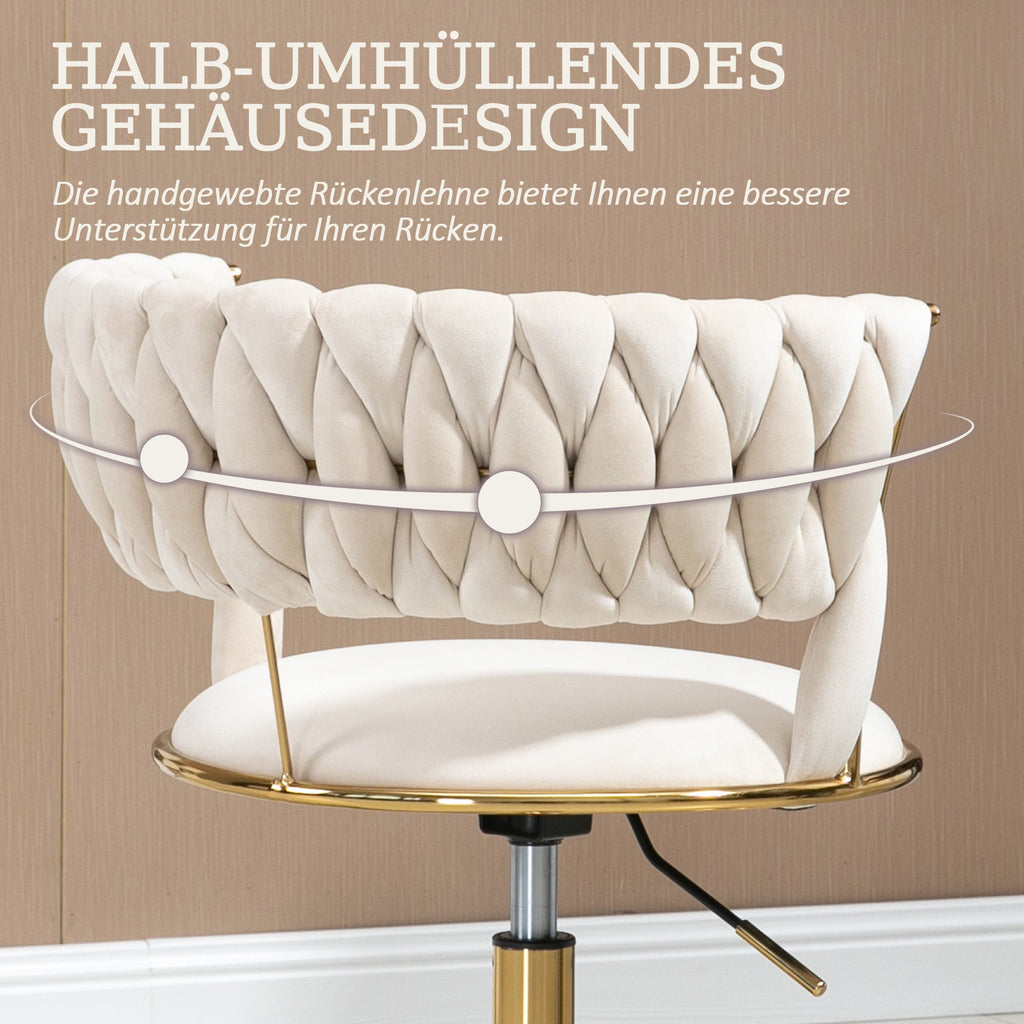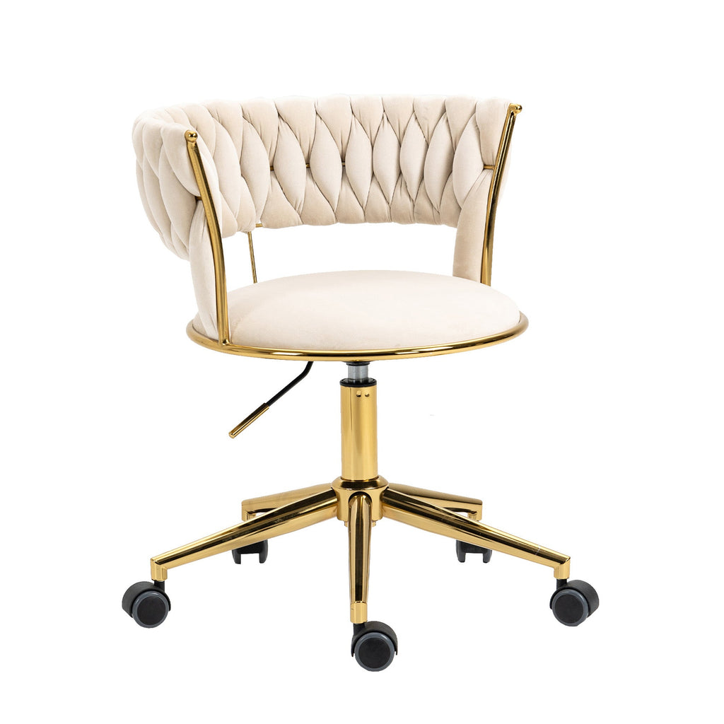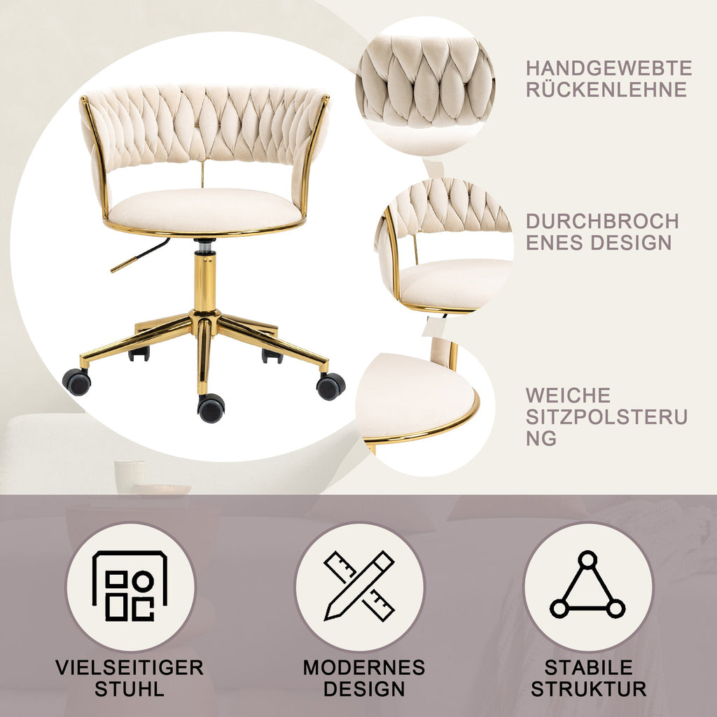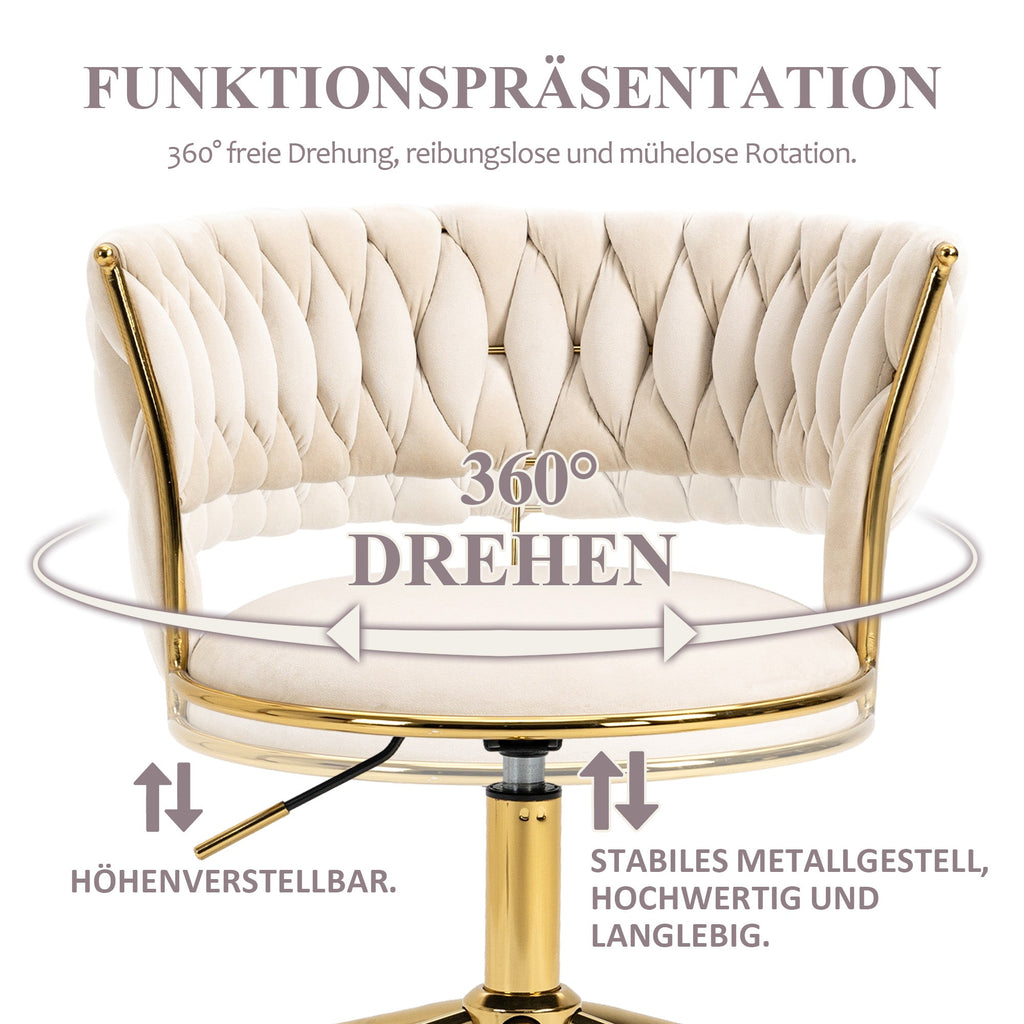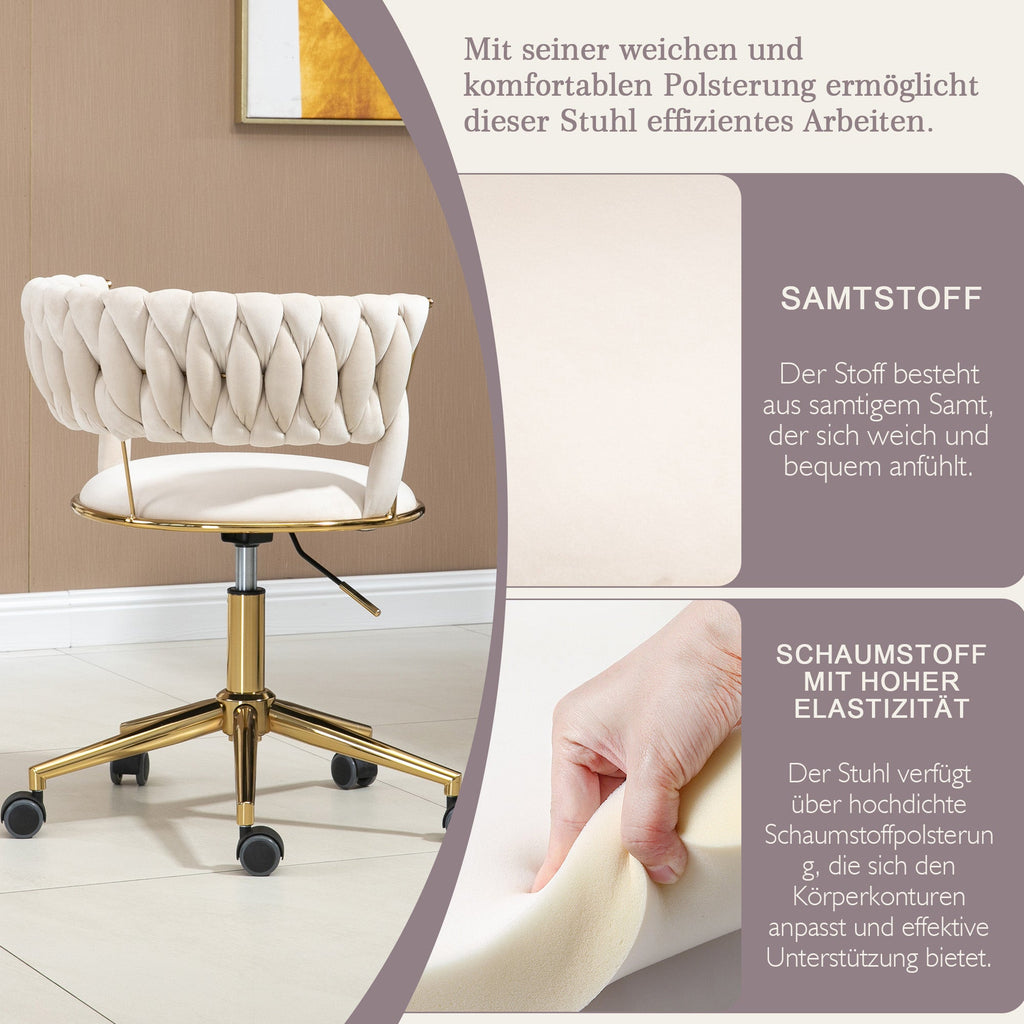 Soft Velvet Office Chair, 360° Swivel, Height Adjustable, Hollowed Back, Hand-Woven Backrest, Stainless Steel Base