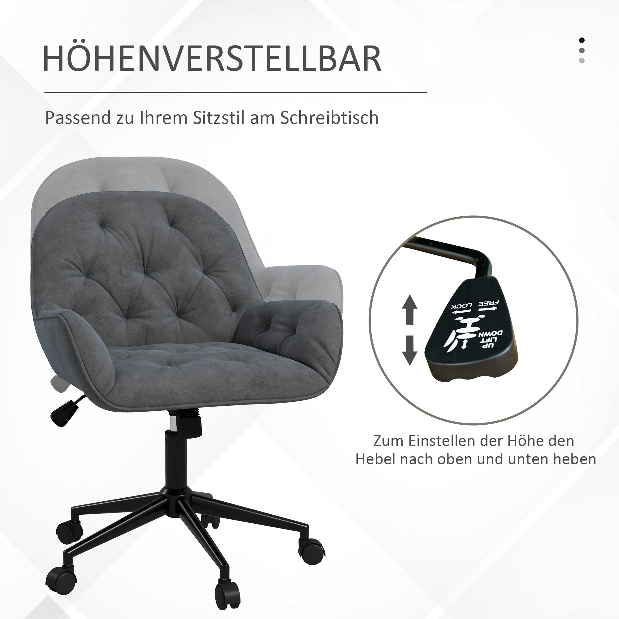 Swivel Chair, Ergonomic Adjustable Height Desk/Living Room, Velvet Dark Grey
