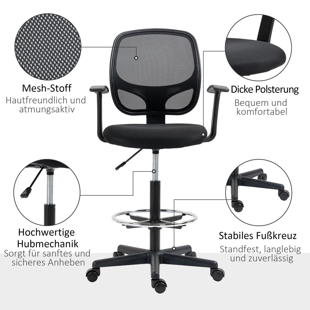 Height Adjustable: The seat height can be adjusted from 65.5 cm to 87 cm to suit your desk and sitting style. The footrest protects your legs and is ideal for working at drafting tables and standing desks.