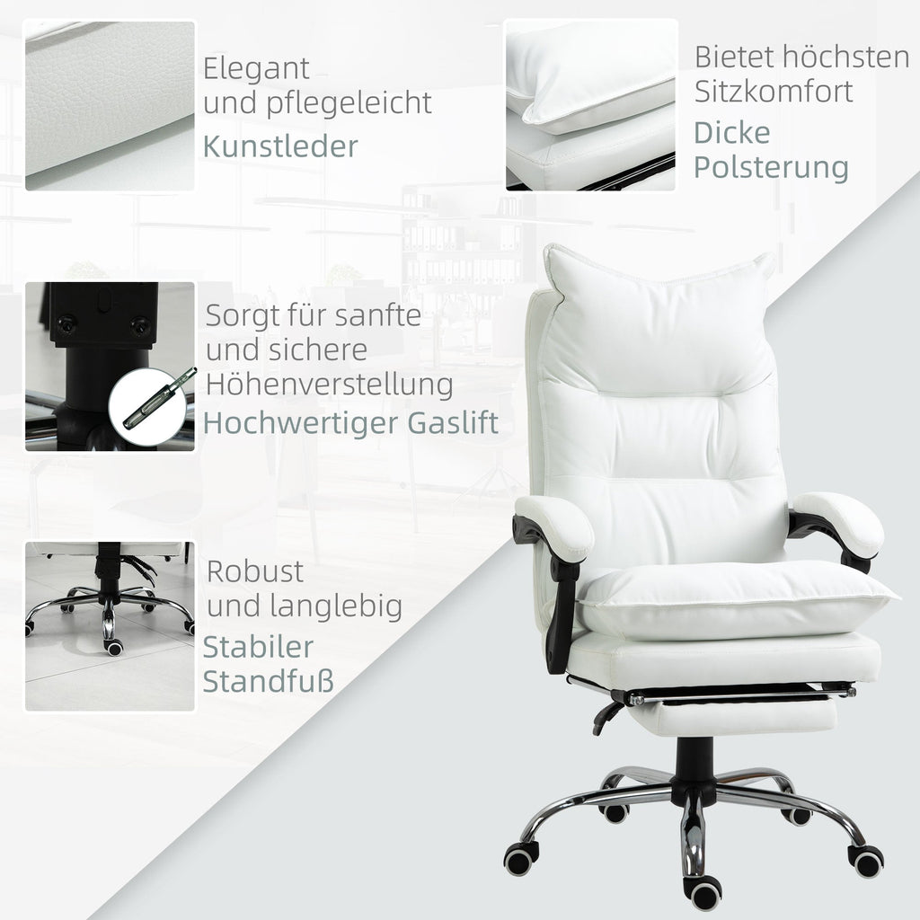 Vinsetto Office Chair Reclining, Footrest, Swivel, White