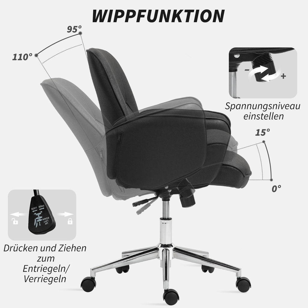 Freedom of movement: Benefit from maximum mobility thanks to the stable swivel base. The PC chair's rocking function relieves strain on your back and helps effectively prevent tension.