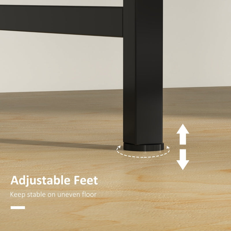 Constructed with a solid metal frame, this small computer desk is robust and maintains its shape. It is fitted with adjustable foot pads to protect your floor and ensure extra balance.