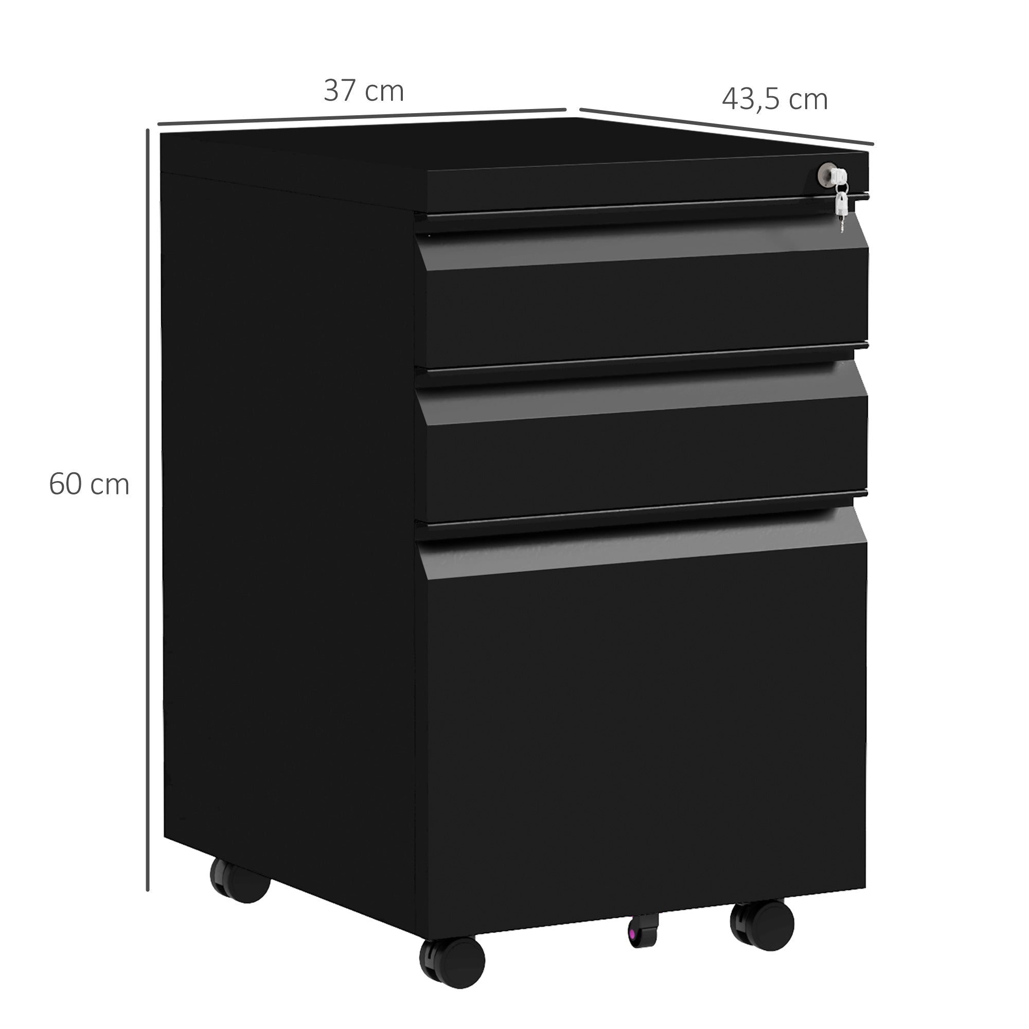3-Drawer Filing Cabinet Mobile Steel Lock A4 Legal Black