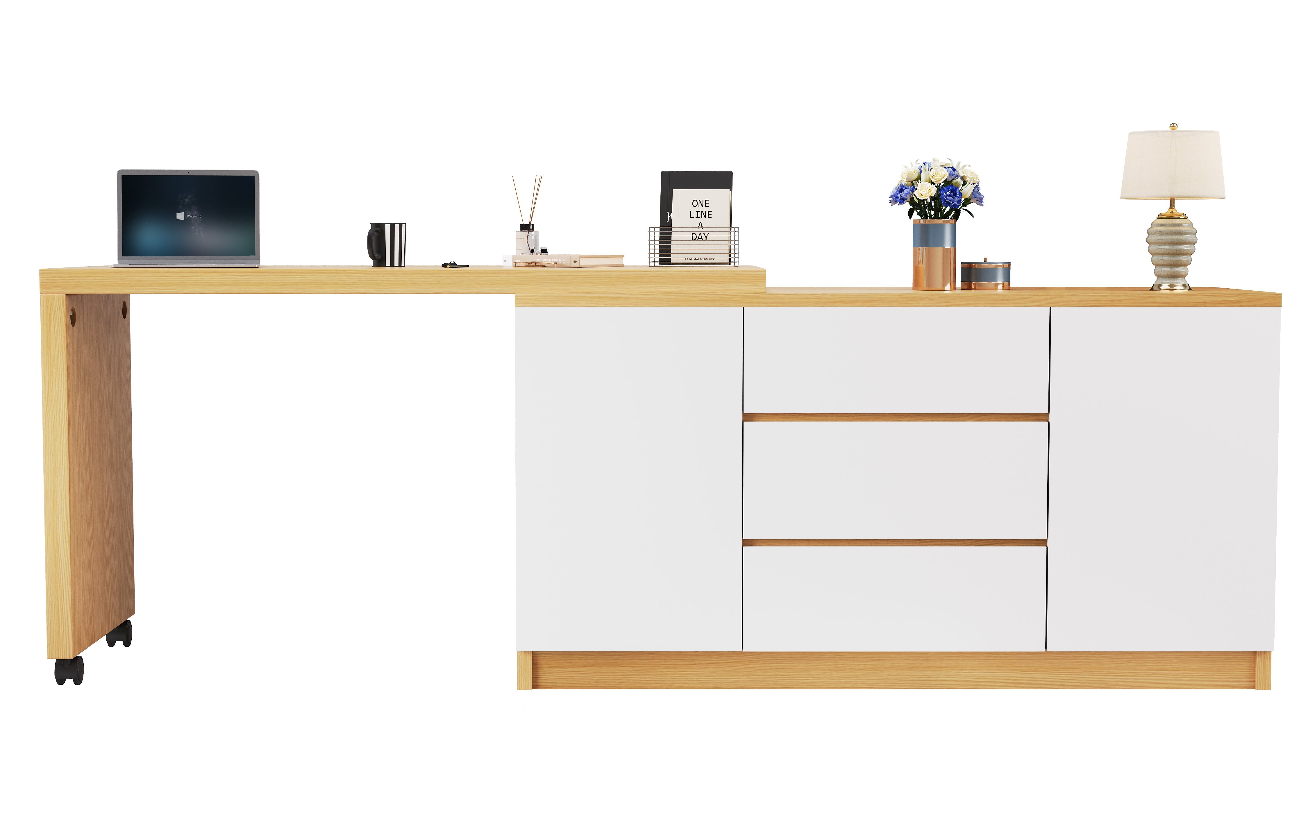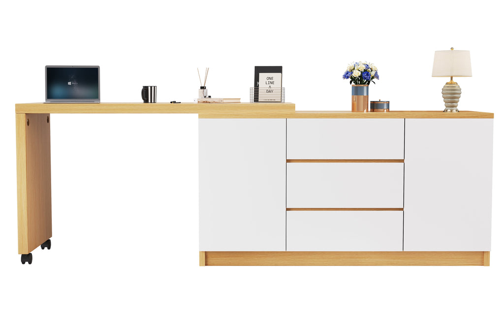 Desk, Multifunctional Rotating, Lockable Casters, White/Oak
