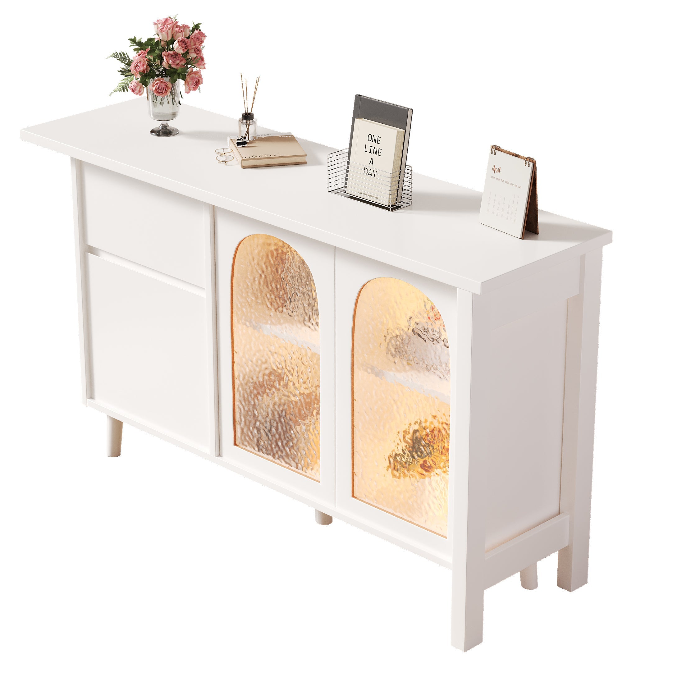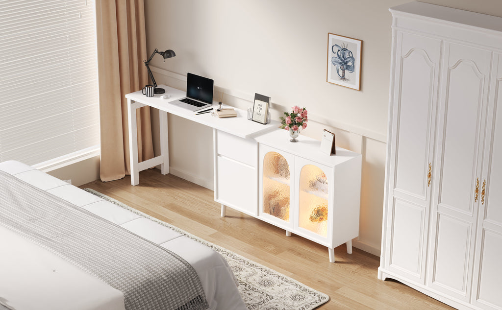 Desk with LED, 2-in-1 Sideboard & Worktop, 360° Rotatable, White
