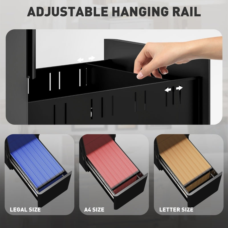 Customized file made easy: Take control of your paperwork with a large drawer of the small filing cabinet featuring an adjustable rail to accommodate A4, legal, and letter-sized files. No more hunting through piles of paper—keep everything neatly organized.