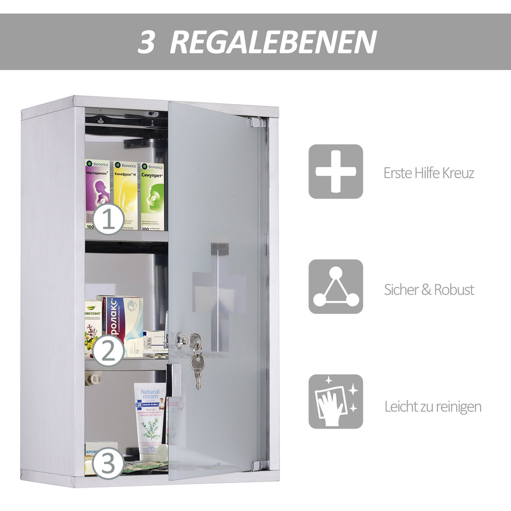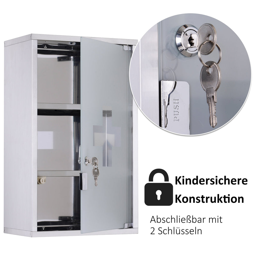 Medicine Cabinet First Aid, Lock, Stainless Steel